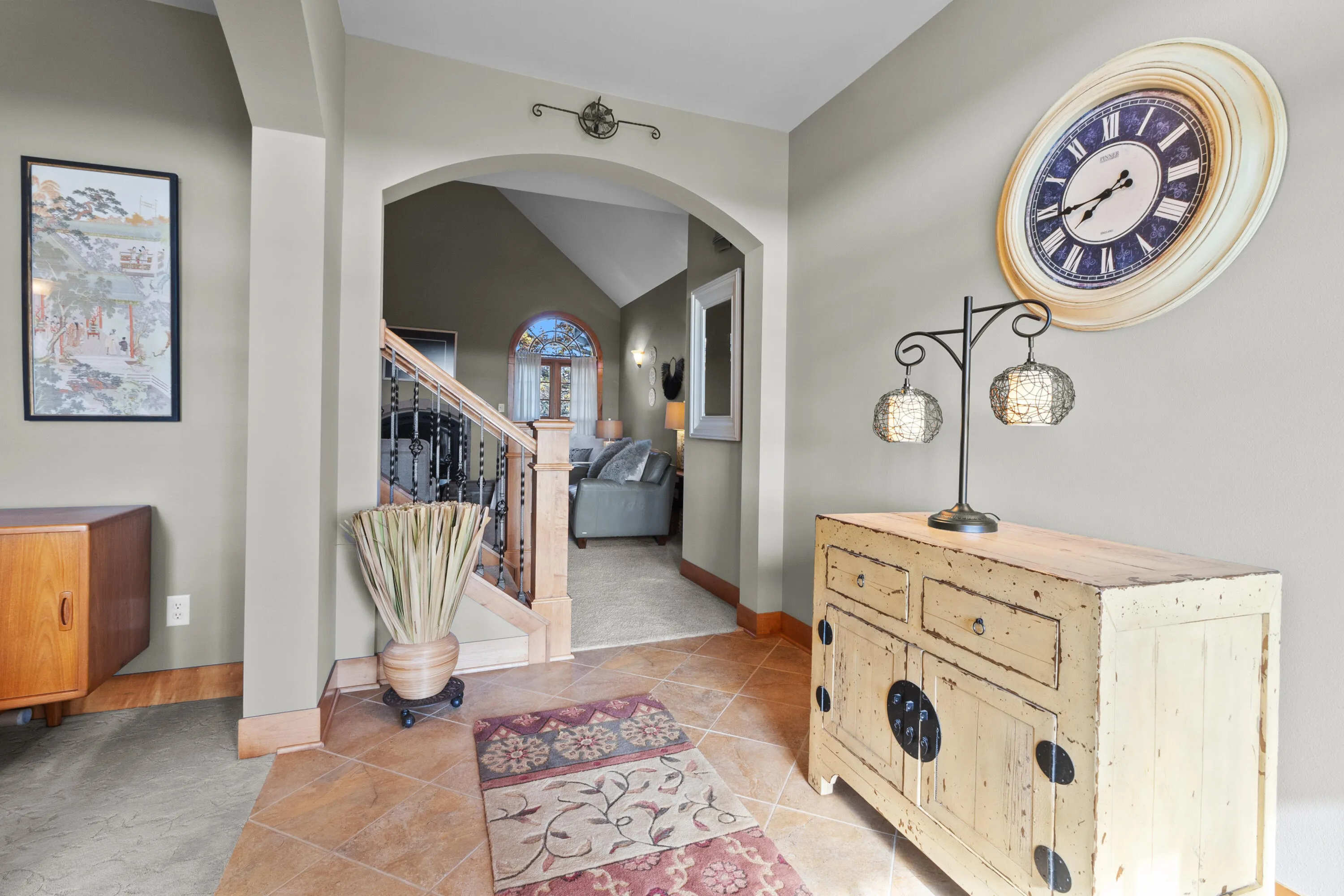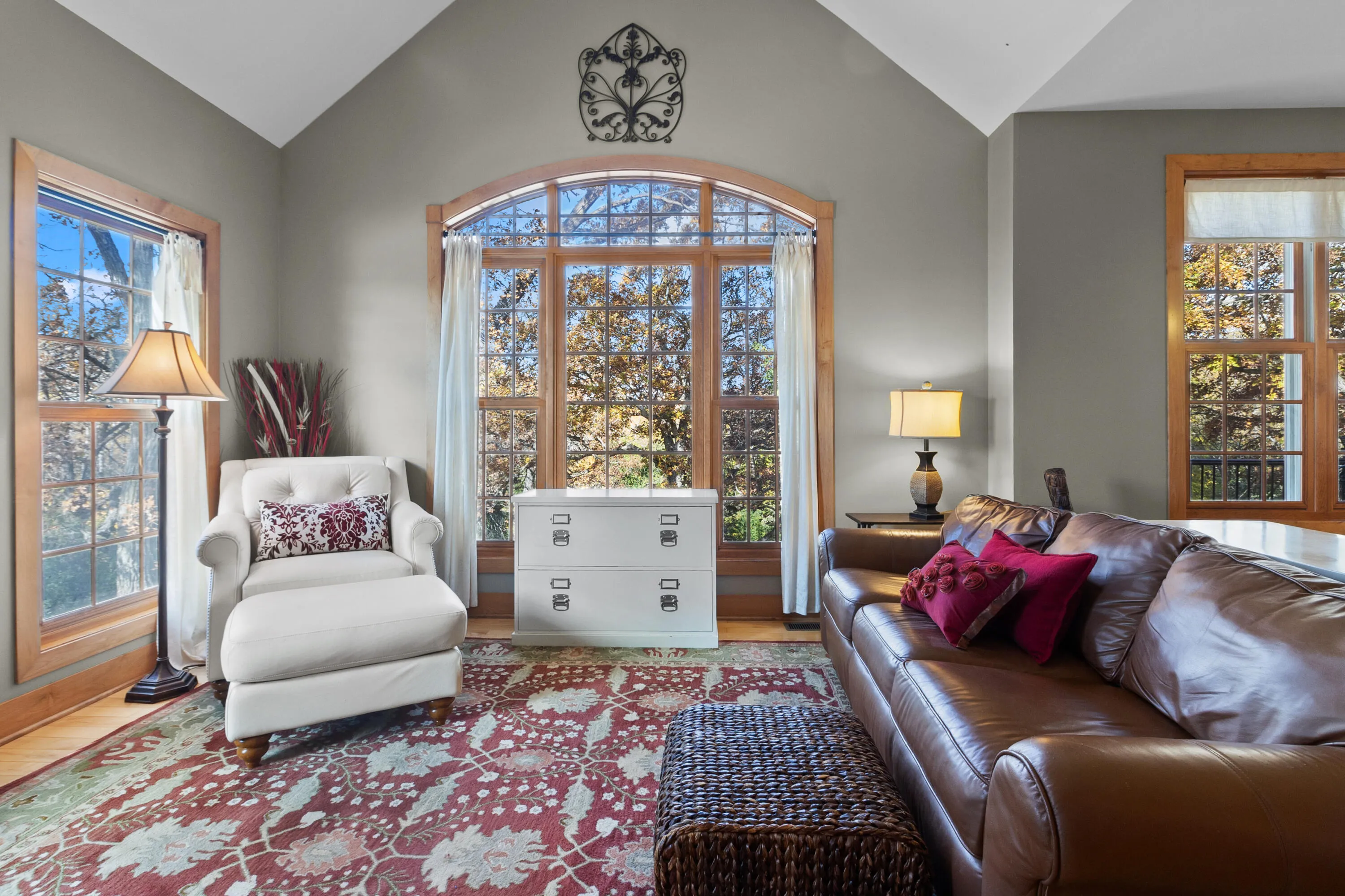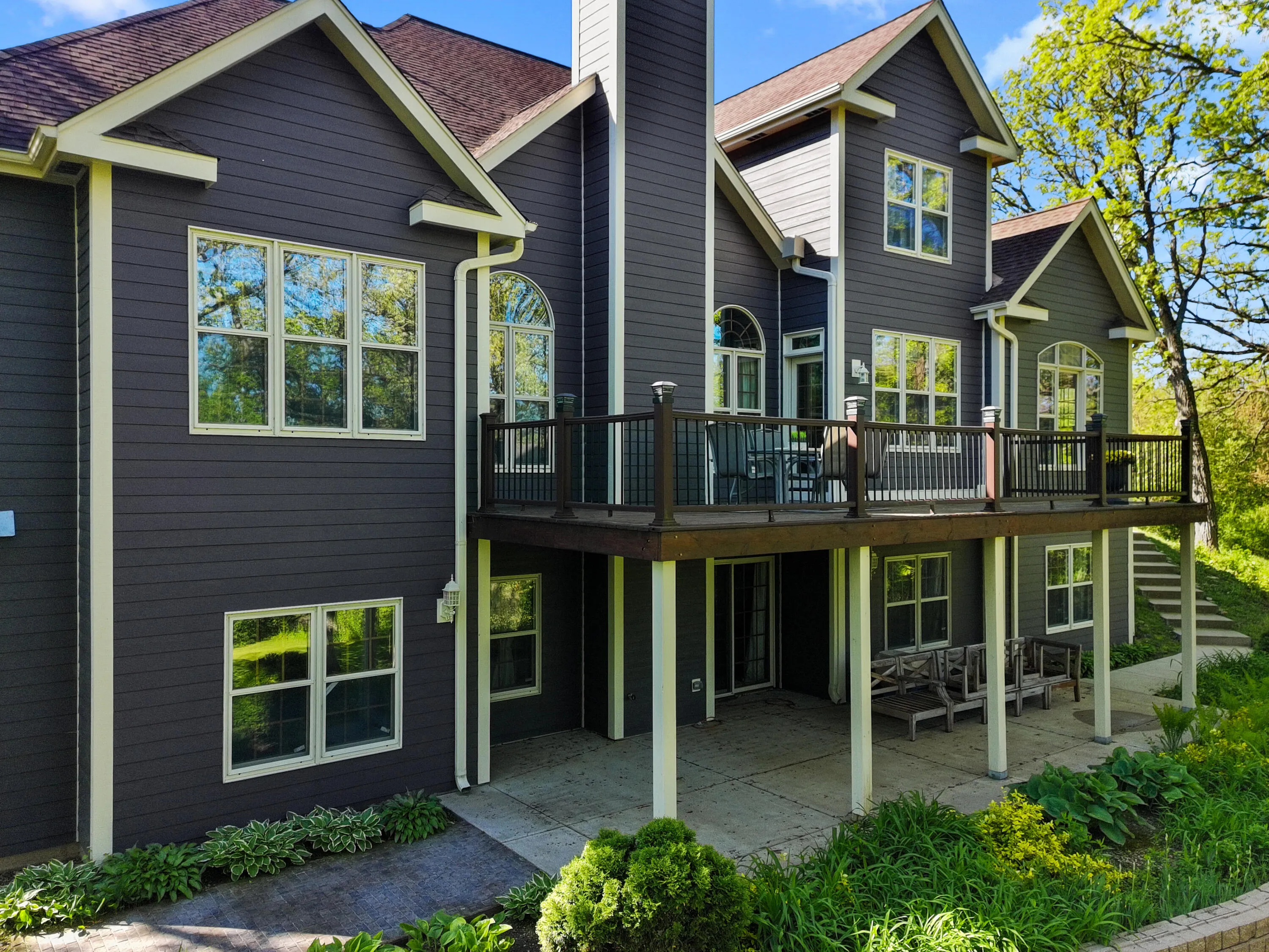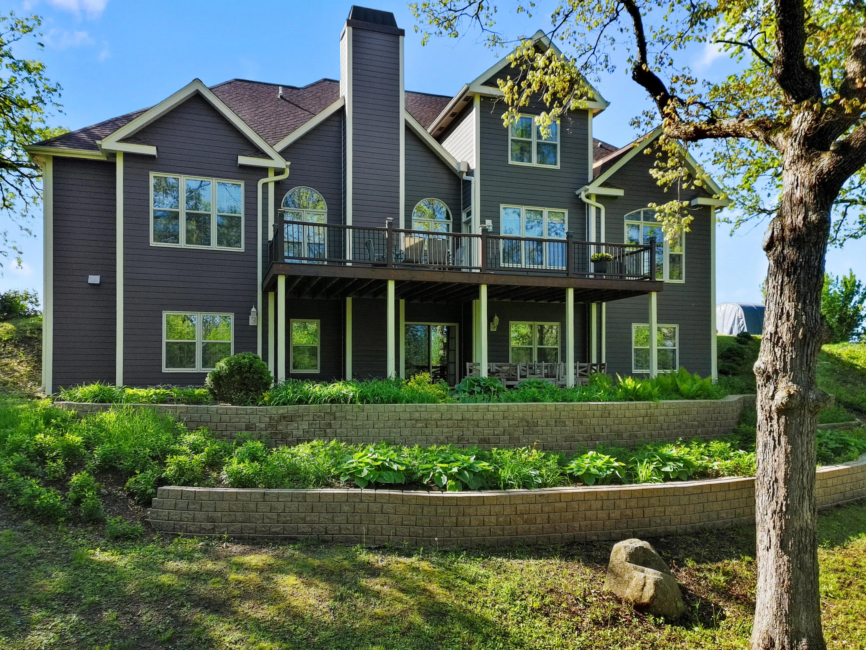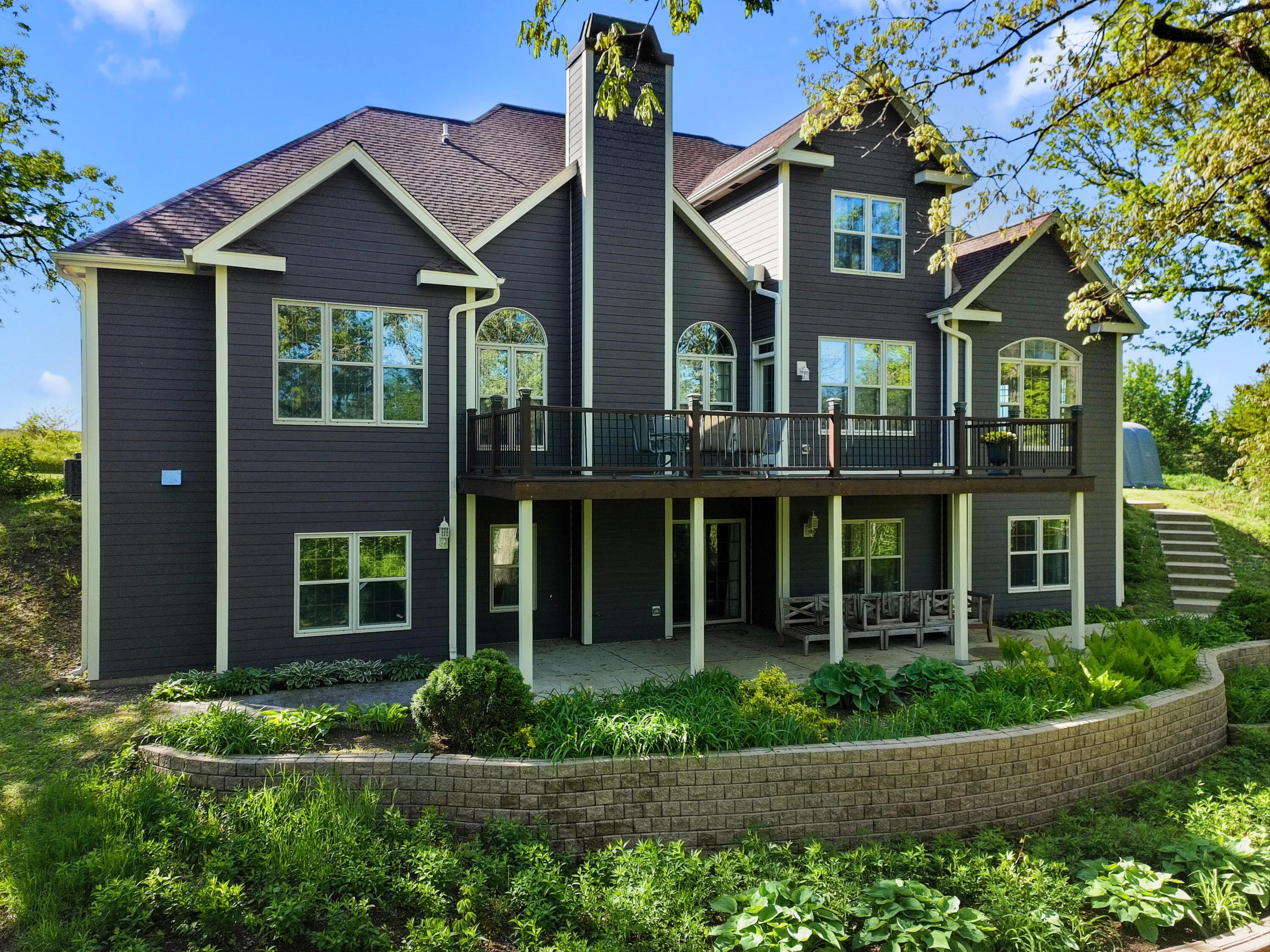 BACK ON THE MARKET through no fault of the Seller! Conveniently located only 2.5 miles from I-43, ideal for daily travel. Prime commuter location. The ultimate nature enthusiast property on a very private 5.73 acres, amongst majestic oak trees. You’ll be impressed by this 5BD, 3.5BA, 2 story with finished walk-out. As you enter the foyer off the covered porch you’re greeted by the LR with vaulted ceiling gas fireplace adjacent to Ktch w/ wood floors, large breakfast bar, granite tops & new Bosch appliances WiFi capable. Master BD ensuite with double vanity, soaking tub plus glass shower & walk-in closet. Upstairs offers a loft 3rd BD with sitting area, jack and jill bath & 4th Bd. Family room walk-out to patio, 5th Bd and ample storage. Walking trails throughout & natural spring pond