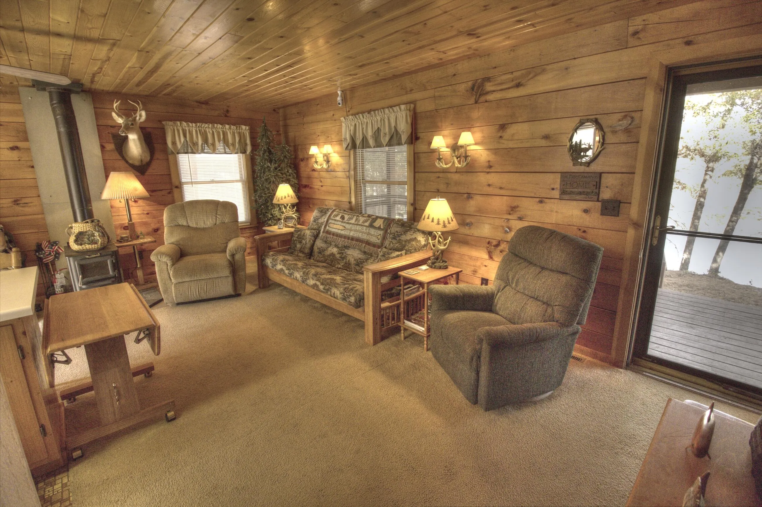 This lovely four-season home is located very close to Petenwell Lake on a branch of the Wisconsin River. The property has a two-bedroom log cabin and a spacious garage for storing ATVs/UTVs and other recreational equipment. An 80-acre plot of public land makes access to hunting very easy. The boat launch is at the end of the road, making this property a paradise for the outdoorsman or woman. There is excellent dining at nearby supper clubs, including The Branding Iron and the Dirty Oar. The property comprises two parcels of land, one of which is where the cabin is located and the other where the garage is situated. Thanks for looking! Has 220 volt service to the garage which can be connected to an RV between the two buildings if buyers need more sleeping room!
