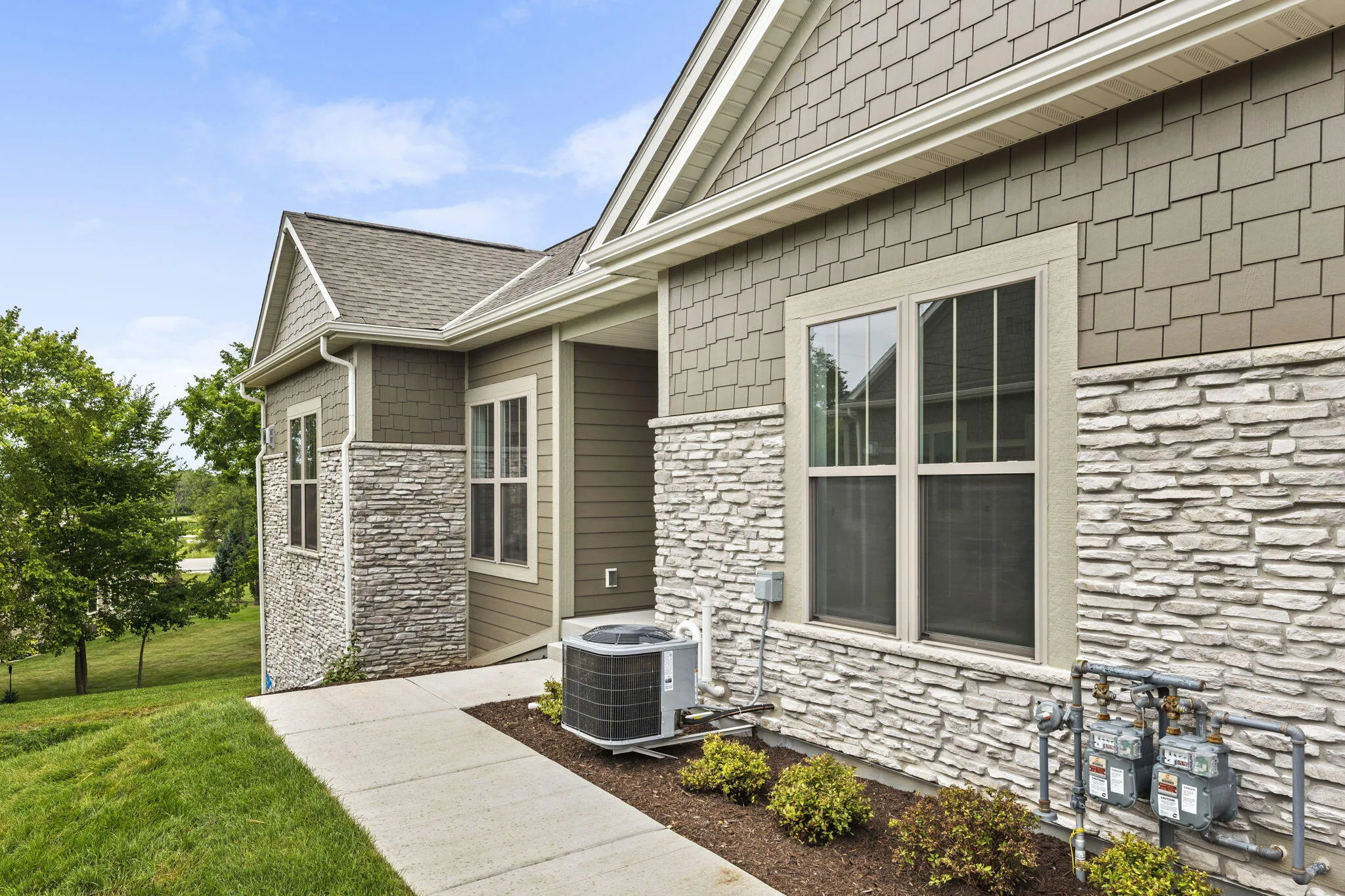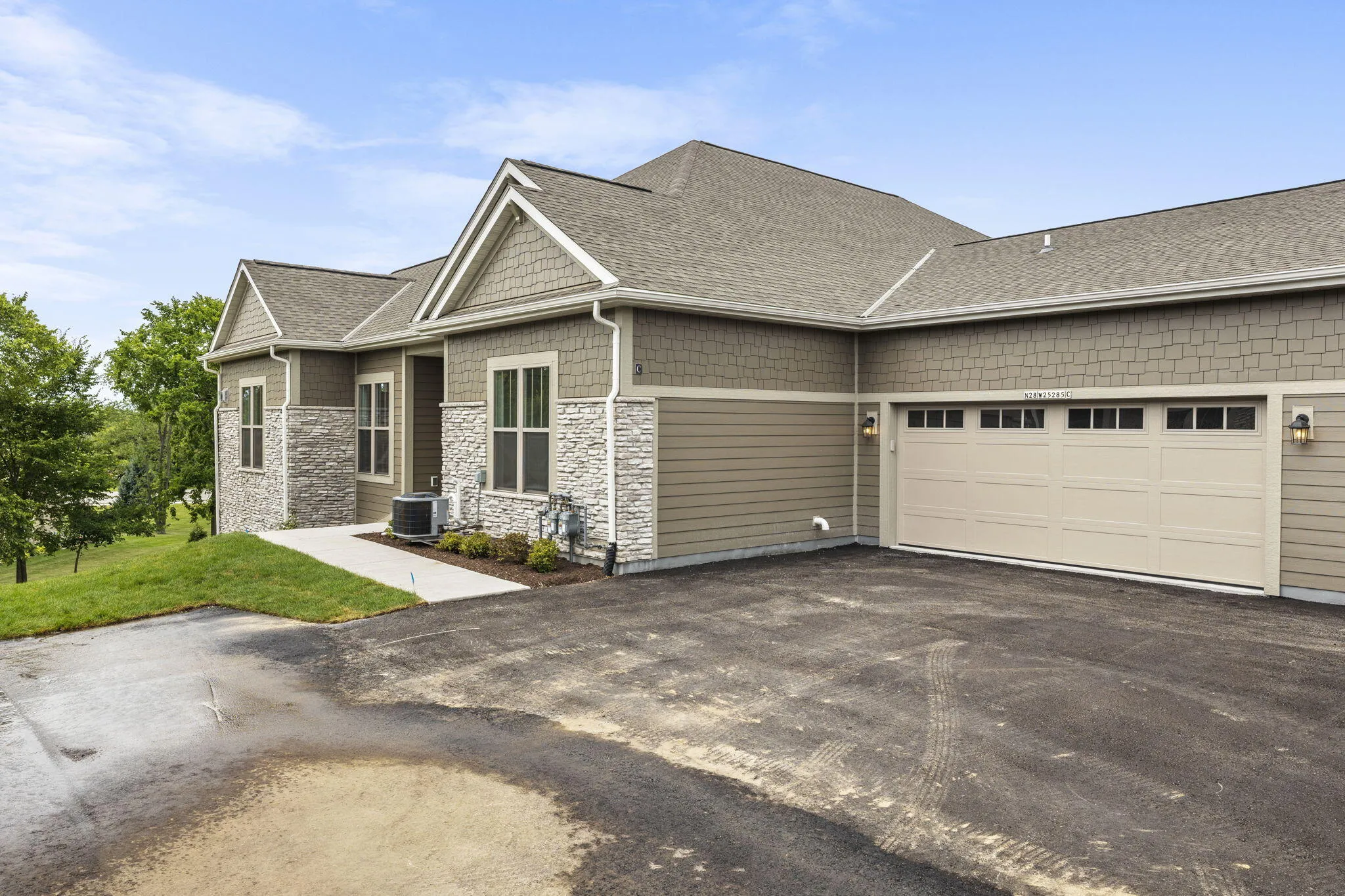 MOVE IN READY! New Construction! Luxury Ranch Halen Homes Condominium- Aspen Floorplan- featuring 2 Bedrooms and 2 Baths. Open concept great for entertaining with 9′ ceilings throughout. Kitchen includes quartz countertops, large center island, painted maple cabinetry and stainless steel gourmet kitchen appliances . Spacious Great Room features a stunning stone to ceiling fireplace. Private Primary Suite with double bowl vanity and large walk-in closet. Spacious unfinished 9′ Basement Offers Great opportunity for Future Expansion w/Full Bath rough-In and Full Rear Walkout Exposure. 2 car attached garage. Exclusive access to a clubhouse with a community room, fitness center, and an outdoor heated pool. Snow removal and lawn care are also included.