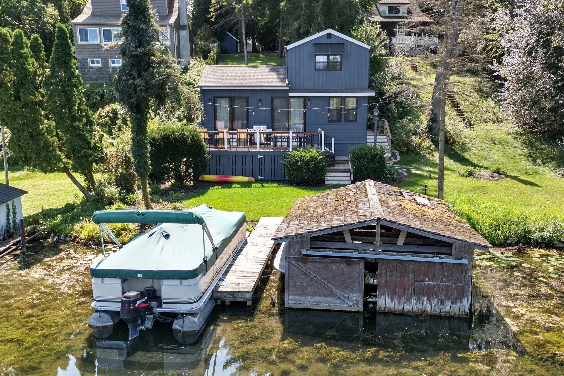 Discover this beautifully renovated 2 bedroom, 1 bath lakefront home on sought-after Lake Beulah in East Troy, WI! Offered fully furnished, this retreat features an inviting entry with drop zone, cabinetry, and laundry, an open-concept layout with vaulted ceilings, a great room, dining area, and cheerful kitchen with quartz counters & ample storage. The full bath shines with custom tile and lots of storage. The bedrooms boast barn-style closet doors, built-in dressers, and shiplap accents. Enjoy stunning lake views from your two-tier deck, perfect for entertaining or relaxing. Natural light and thoughtful storage fill the home. Plus, it’s a fully approved, licensed short-term rental, creating year-round income potential making this the ultimate Lake Beulah getaway and investment property