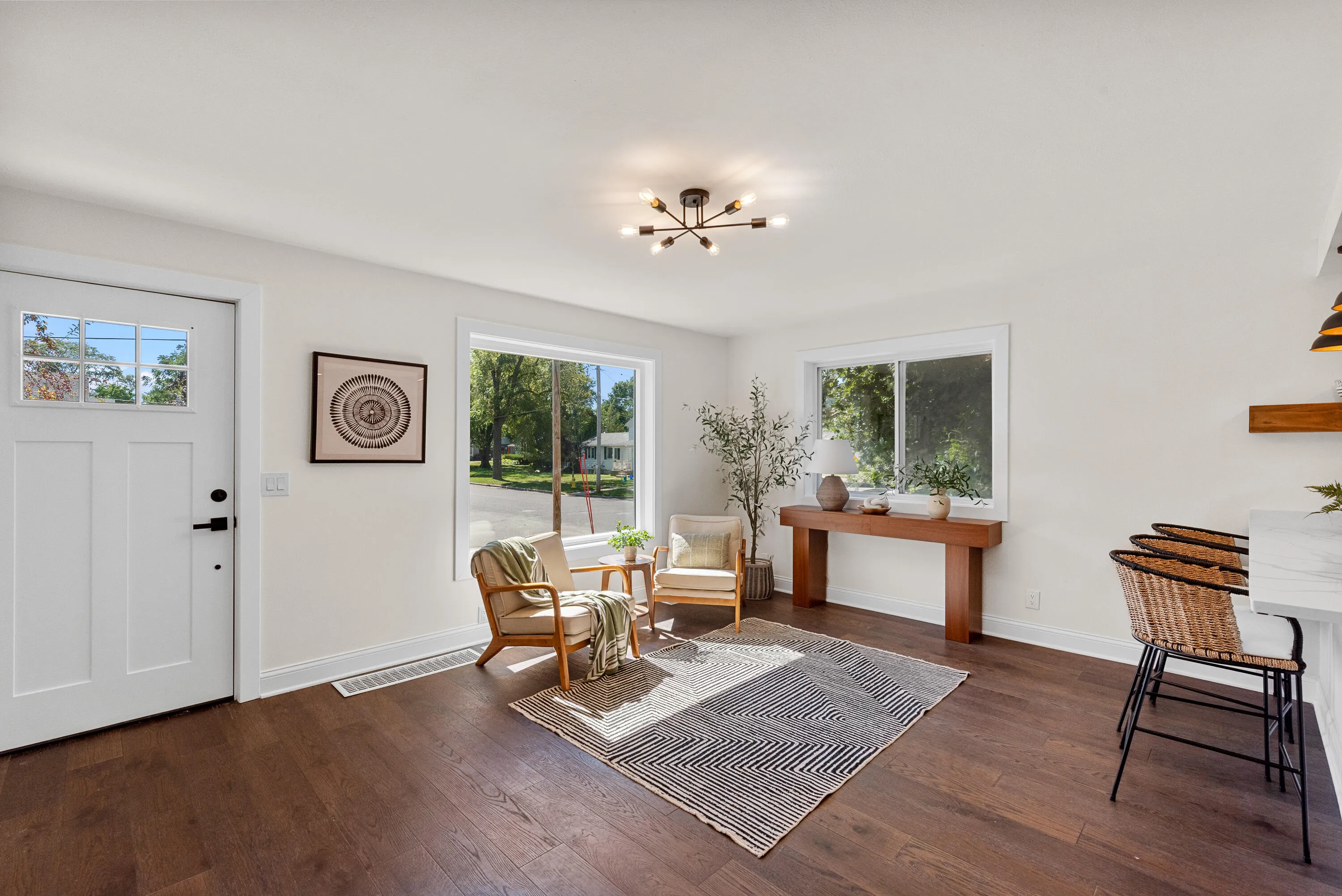 Steps away from historic Brick Street, this 5-bed, 3-bath home blends modern comfort with everyday function. The open main floor features a bright kitchen with gas range, oversized island, and dining area that flows to a spacious living room and large private deckideal for entertaining. The primary suite offers a walk-in tile shower, double vanity, and generous closet. Two more bedrooms and a full bath complete the main level. Downstairs adds a guest suite, laundry, and storage. Upstairs, a finished bonus room serves as a fifth bedroom or office. Corner lot, fenced yard, 2-car garage, and a quiet location near schools, parks, and downtown Delavan.