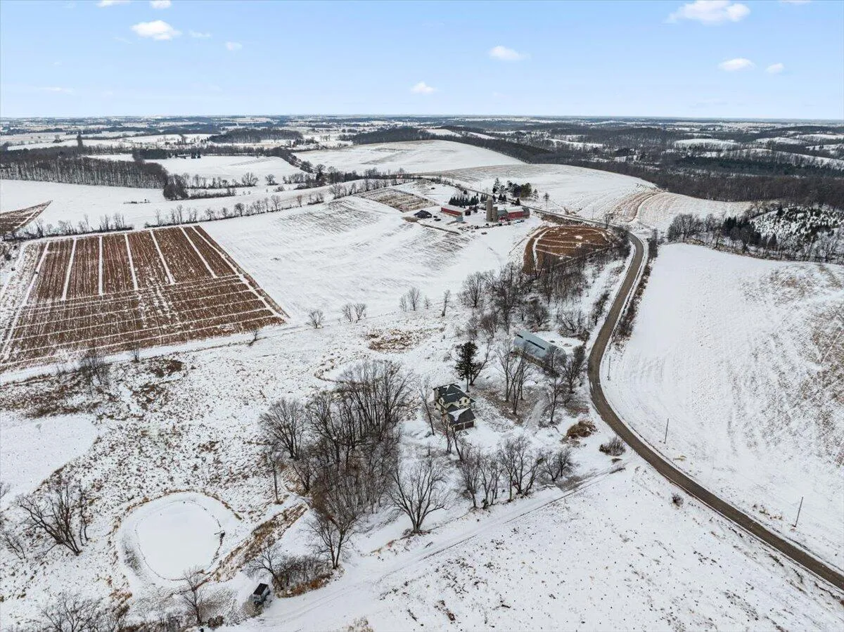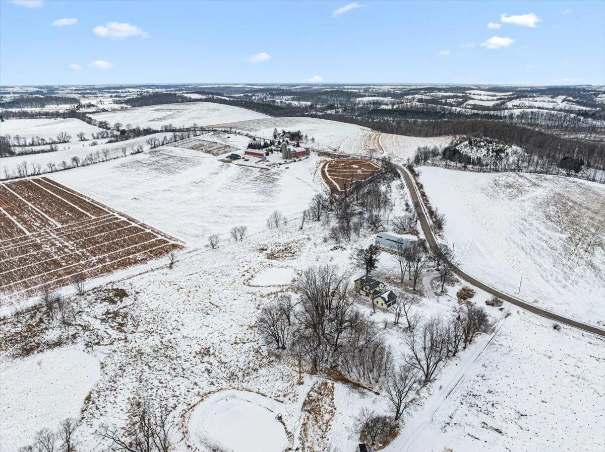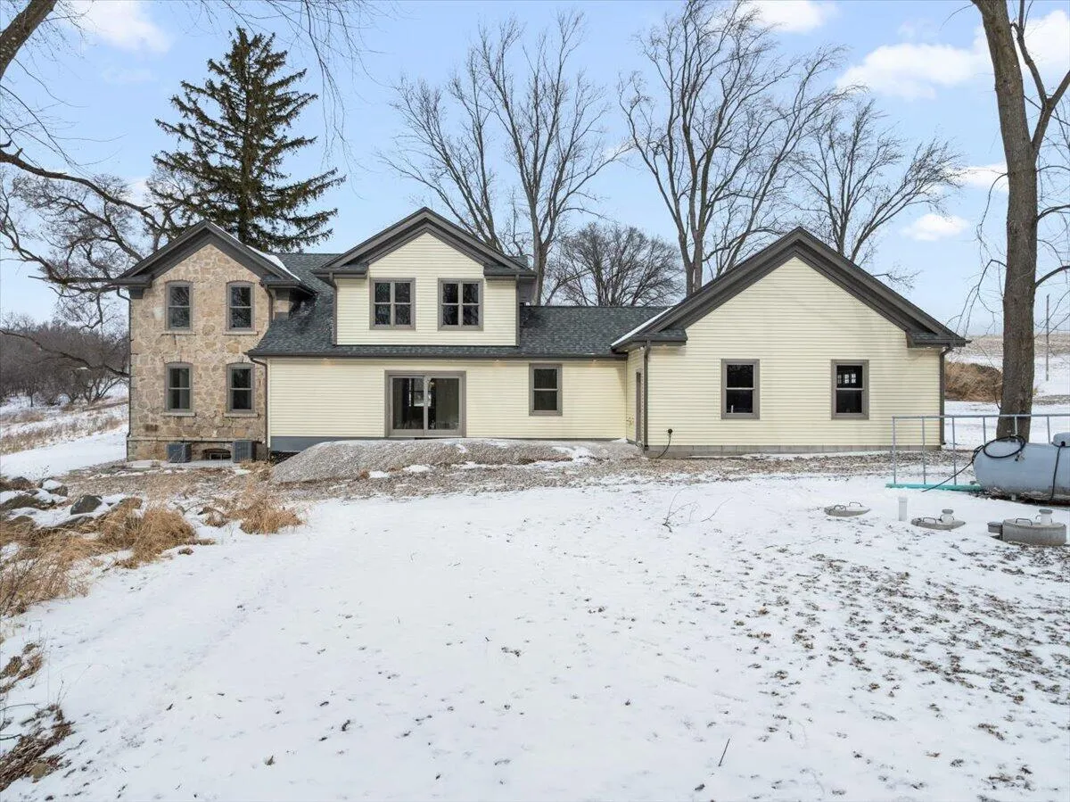 Nestled on 9 Acres with pond and the Kettle Moraine countryside as the backdrop, you will find this ONE-OF-A-KIND STUNNING PROPERTY! As you step inside this COMPLETELY renovated 1800s farmhouse you will find a blend of history, craftsmanship & beautiful updates.Main floor features living room w/gas fireplace. Kitchen w/abundance of cabinets, Cambria Quartz counter tops, maple island & original hardwood floors.Butlers panty w/sink, huge laundry/mudroom & full bath. 2nd floor offers owners suite w/walk-in closet,full bath w/dual sinks & walk-in shower. 2 add’l bedrooms,full bath & laundry room. Amish made woodwork/doors. 2 car garage. Classic barn w/endless possibilities. Carpeting, concrete sidewalk & approach to be completed before closing. THIS IS A MUST SEE EXCEPTIONAL PROPERTY!