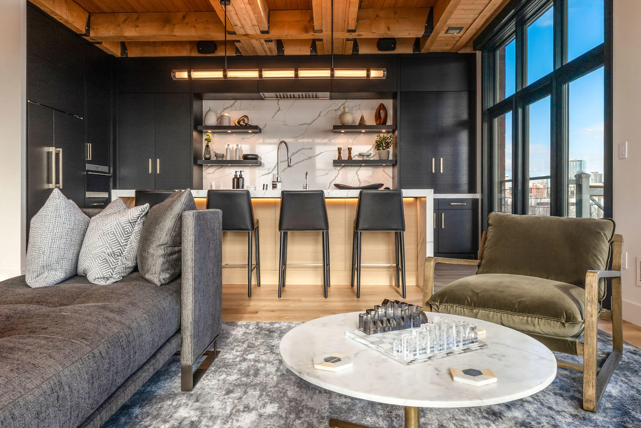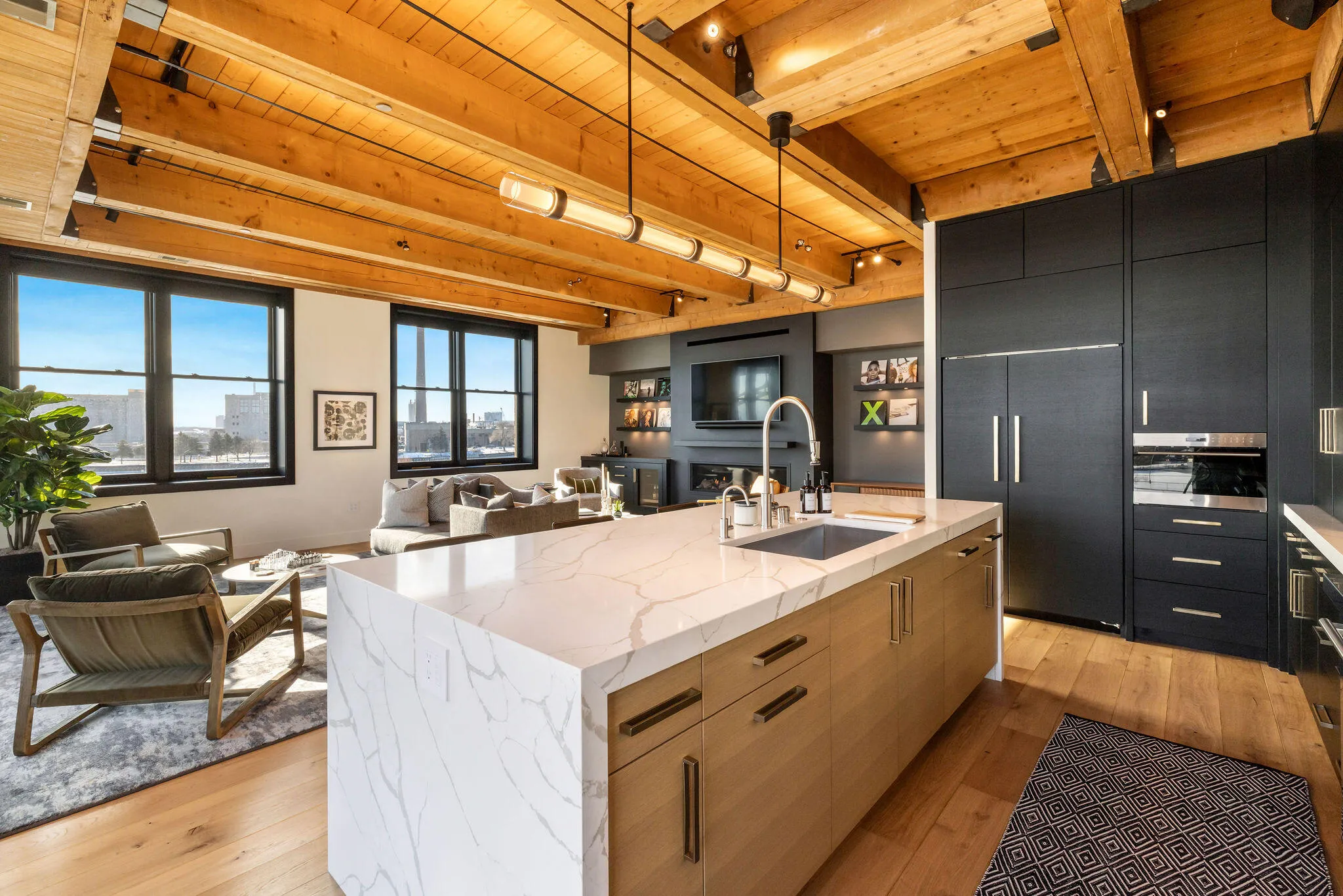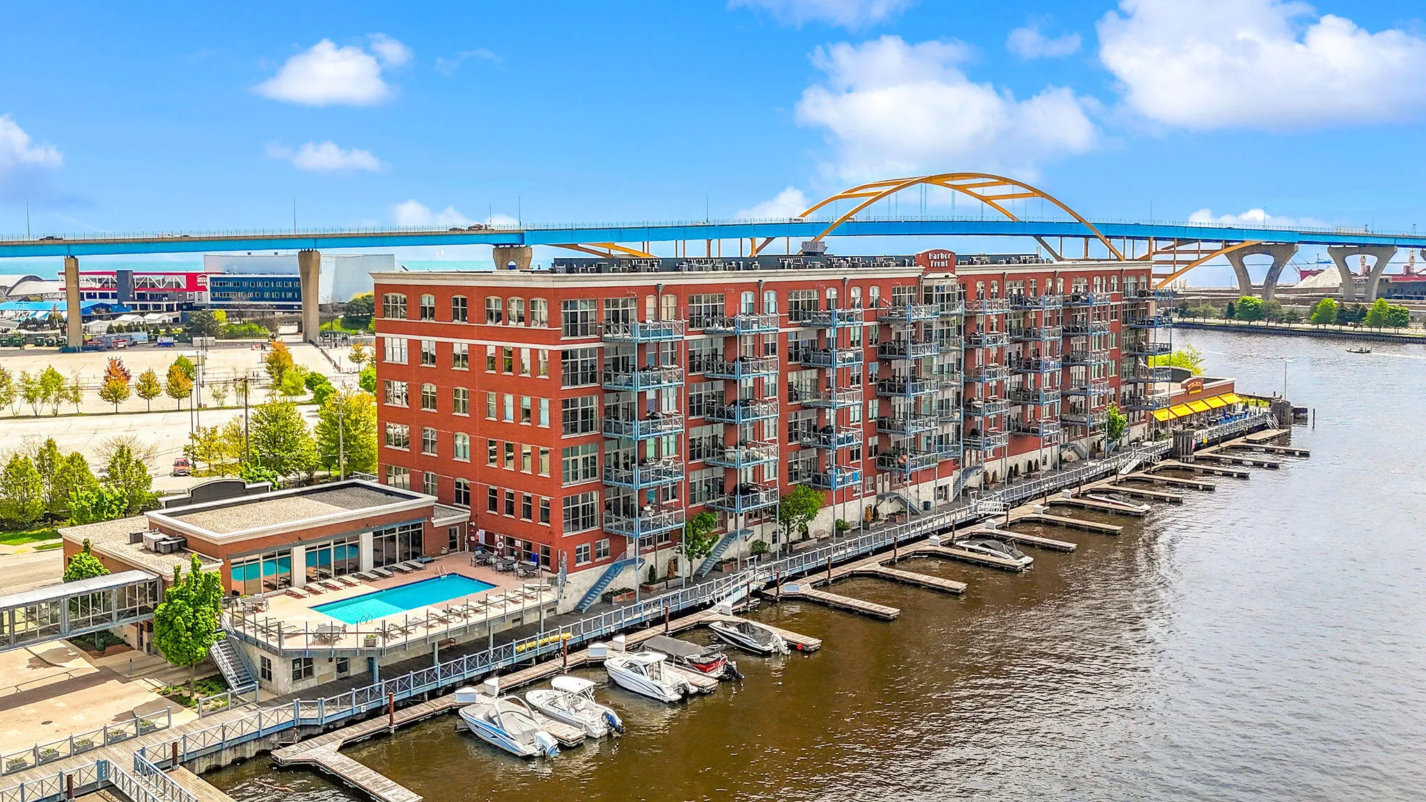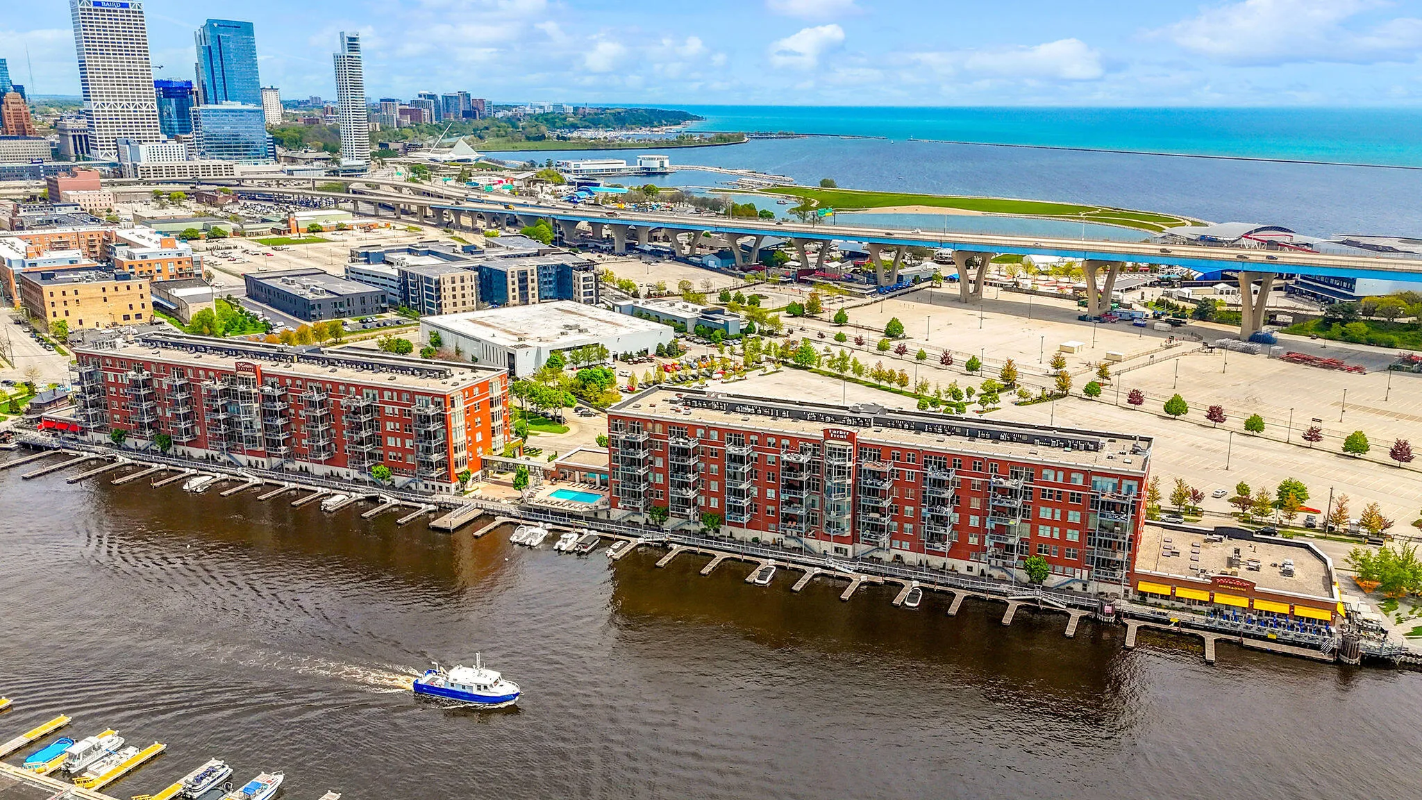 Experience luxury urban living in this beautifully renovated corner condo at Harbor Front Condominiums, one of the most desirable addresses in Milwaukee’s Historic Third Ward. This open-concept residence features wide-plank hardwood floors, sleek Shaker doors, Lutron smart lighting, integrated A/V, in-unit laundry, and a guest bath all thoughtfully curated for modern comfort and style.The gourmet chef’s kitchen boasts custom cabinetry, new stainless appliances including a built-in refrigerator and dishwasher, and a generous island perfect for entertaining. The great room centers around a striking gas fireplace and wine/beer fridge and flows seamlessly to an oversized private balcony showcasing sweeping lake, river and city views.Amenities include a heated outdoor pool, clubhouse & gym.