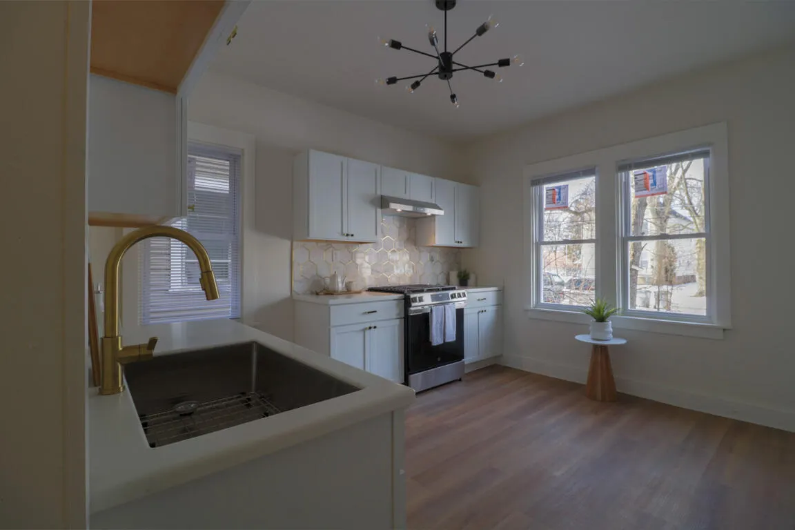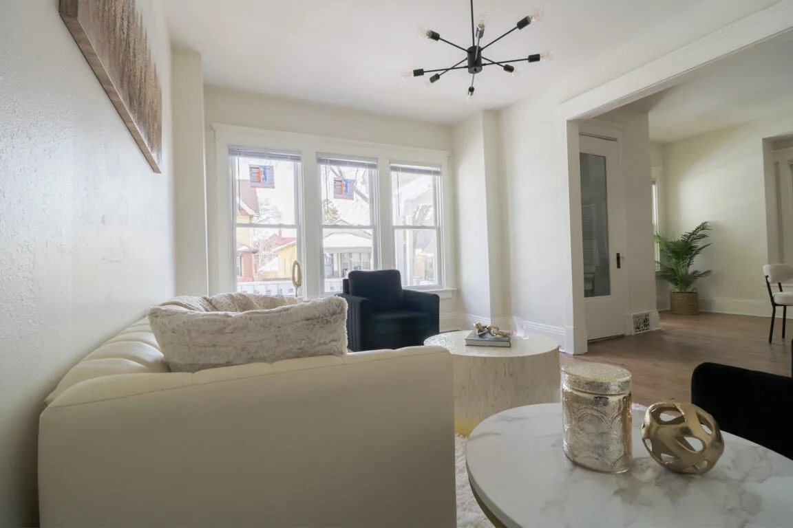 Charming two-story home with classic curb appeal. Durable siding, welcoming covered front porch & brick accents. This 5-bedroom home has been comprehensively renovated with high-end finishes & a cohesive, modern & classic design throughout with new flooring, windows, furnace & roof. The thoughtful layout creates a perfect space for entertaining, flowing from the formal dining room to the living room & elegant kitchen. The kitchen features brand-new appliances & a sophisticated color palette. Main level offers an extra bedroom/office & full bathroom. Upper level boasts 4 bedrooms with generous closets & an updated bathroom. Spacious basement is a blank canvas for your dream rec room or relaxation space. The home is truly turn key. Conveniently located near parks, schools & public transit.