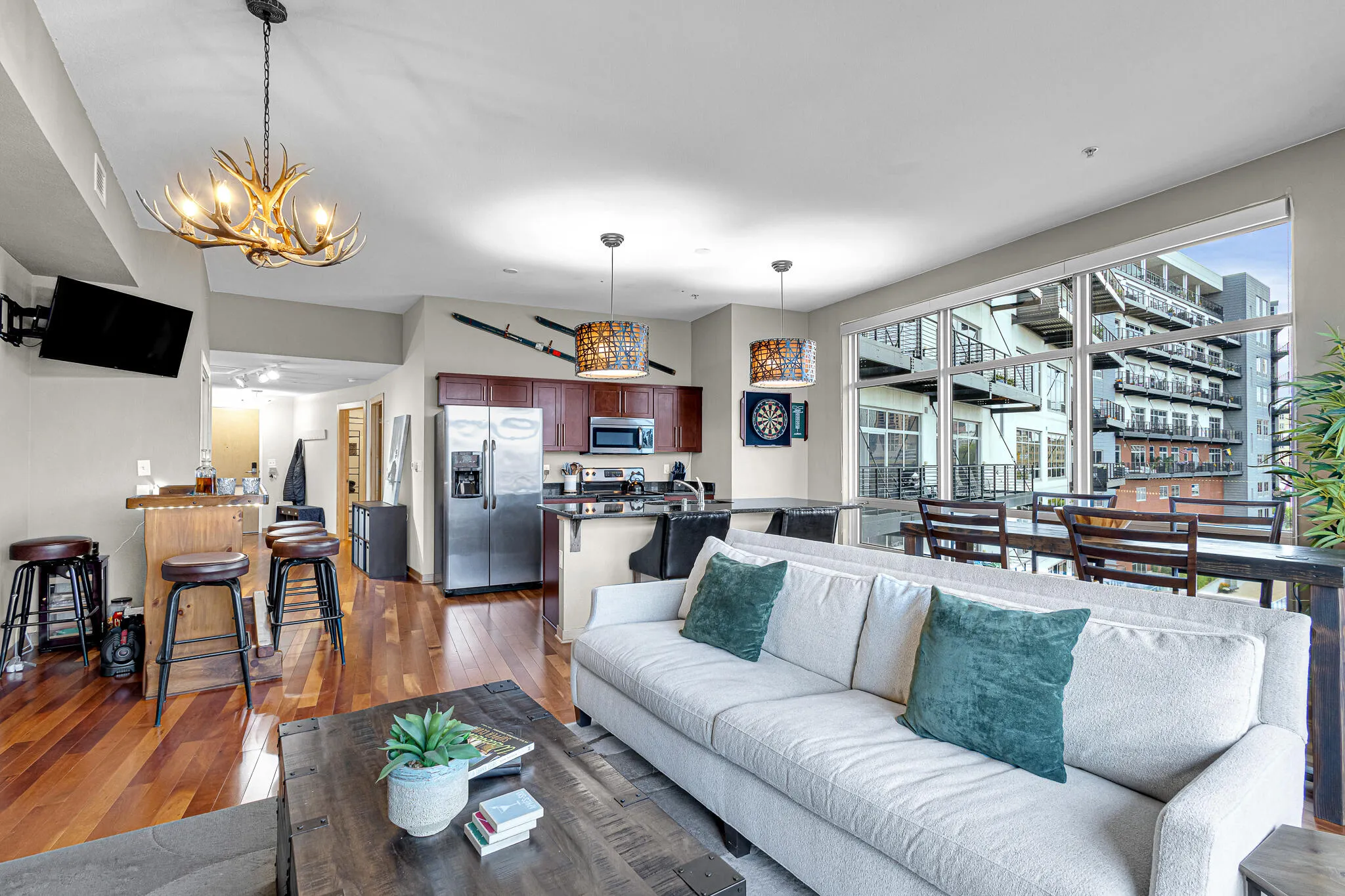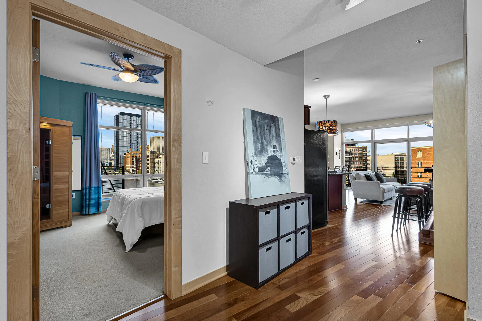 THE ULTIMATE FURNISHED, 1BD+OPEN DEN/1BA RENTAL ON THE RIVER DOWNTOWN MKE IS NOW AVAILABLE! The spectacular waterfront views of the confluence of the rivers + city from the flr-to-ceiling windows & balcony are sure to inspire 24/7! Just bring your suitcase – all the furniture & furnishings incl (down to the silverware & even the sauna!). BD w/queen bed+lrg WIC. Open den perfect for home office. Bar too! In-unit W/D. 1 indoor heated prkg space across the hall. Steps to the riverwalk, public dock, Screaming Tuna, Third Ward & Walker’s Pt entertainment, public market, coffee shops, galleries, restaurants, lakefront & more. Concierge bldg + tons of amenities. Internet incl. Available May 1st for 12 mo. (inquire if shorter term needed. 6mo min). No pets. No smoking. 700+ credit. Income 3x rent