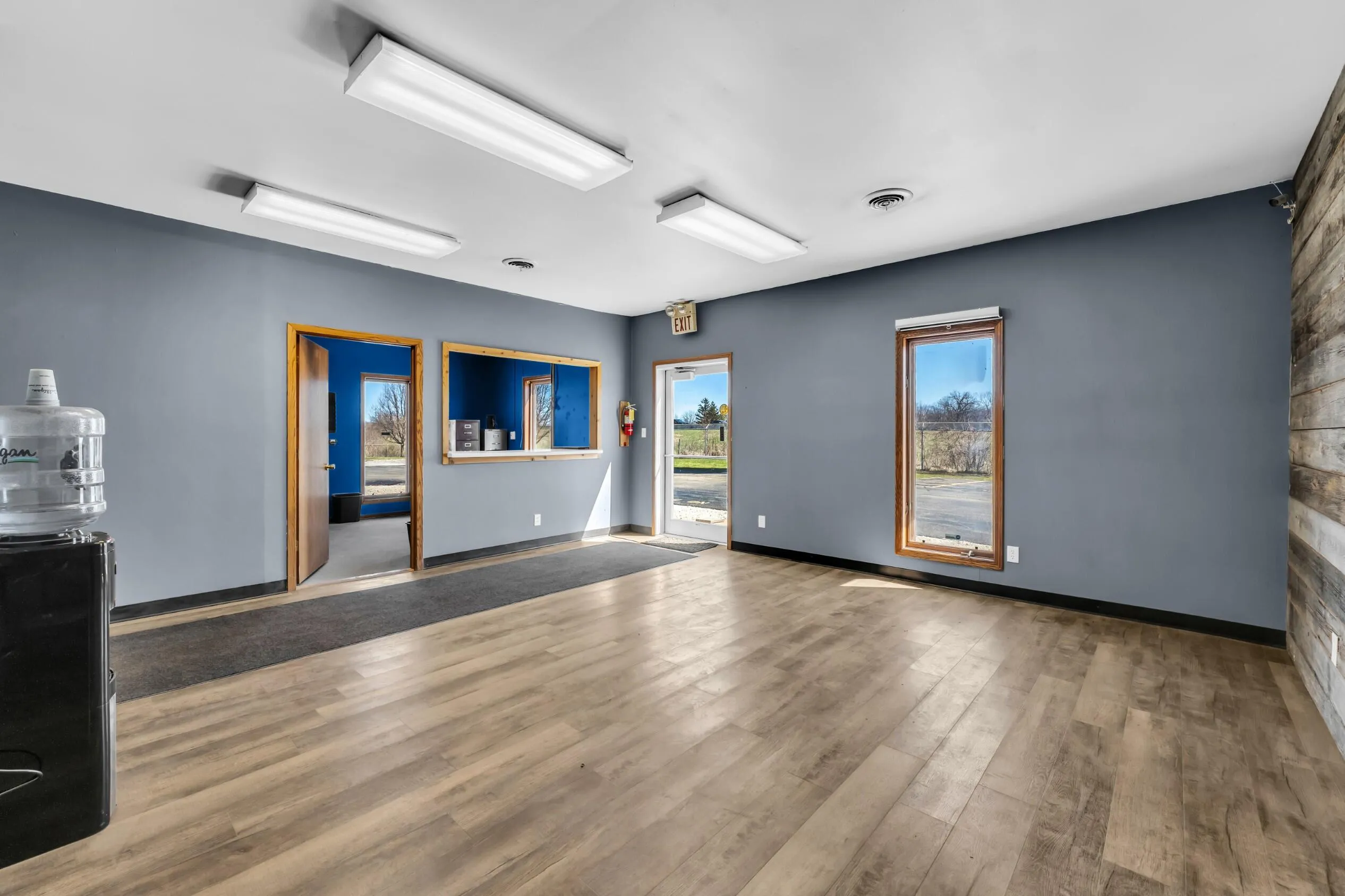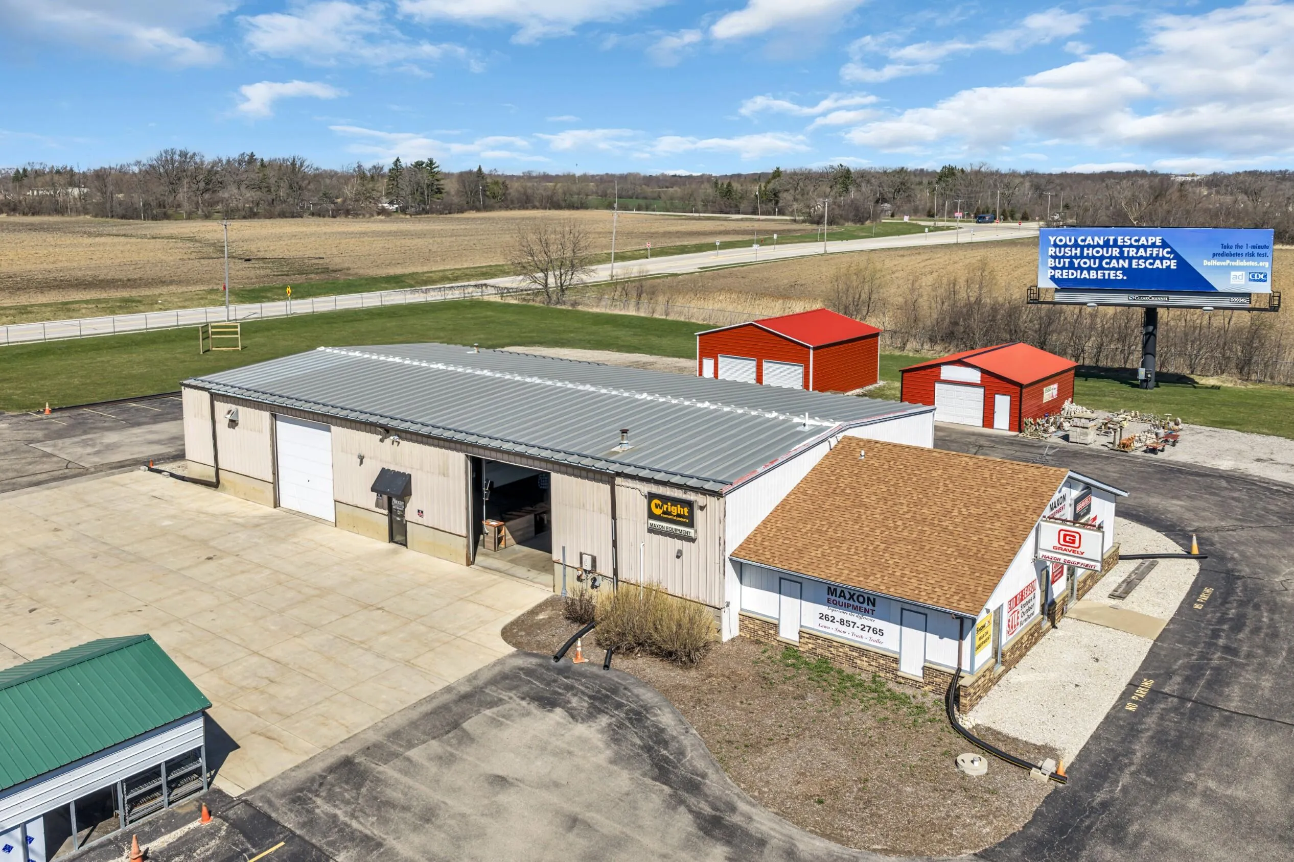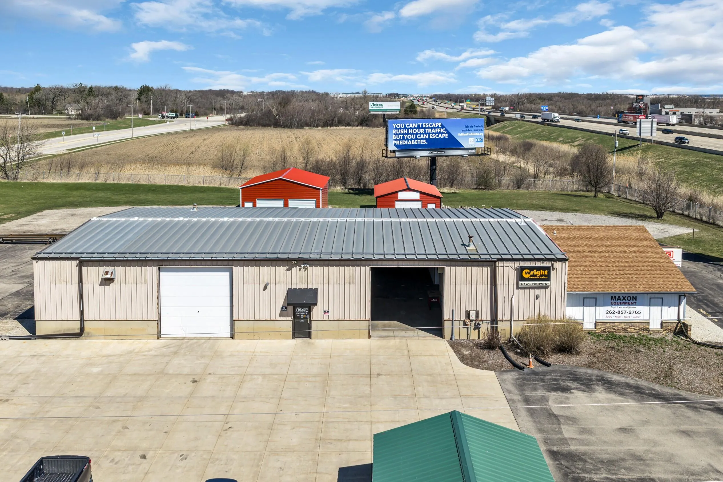 Excellent Multi-use Building with Amazing Exposure! Set on the West Frontage Road of I-94 with immediate access to the North and South. Very spacious building with 1200 sq ft of carpeted office area along with 5000 sq that can be used for endless options for your business. Currently separated with temporary wall with one side a showroom with 750 sq of mezzanine storage/parts and the other side for warehouse, etc. Three Garage Doors for easy in and out. Fenced in with a ton of parking and two outside storage buildings with garage doors. This is an exceptional building for machine shop, landscape service, car detail, warehouse, etc,etc.