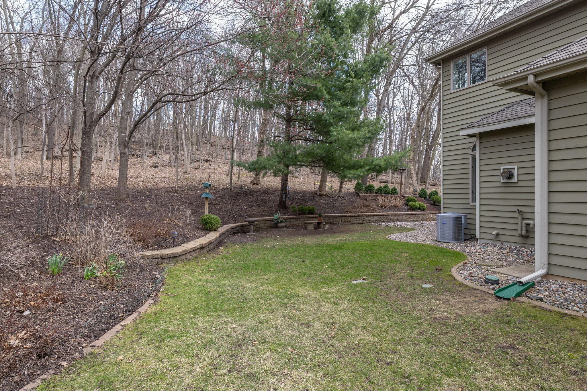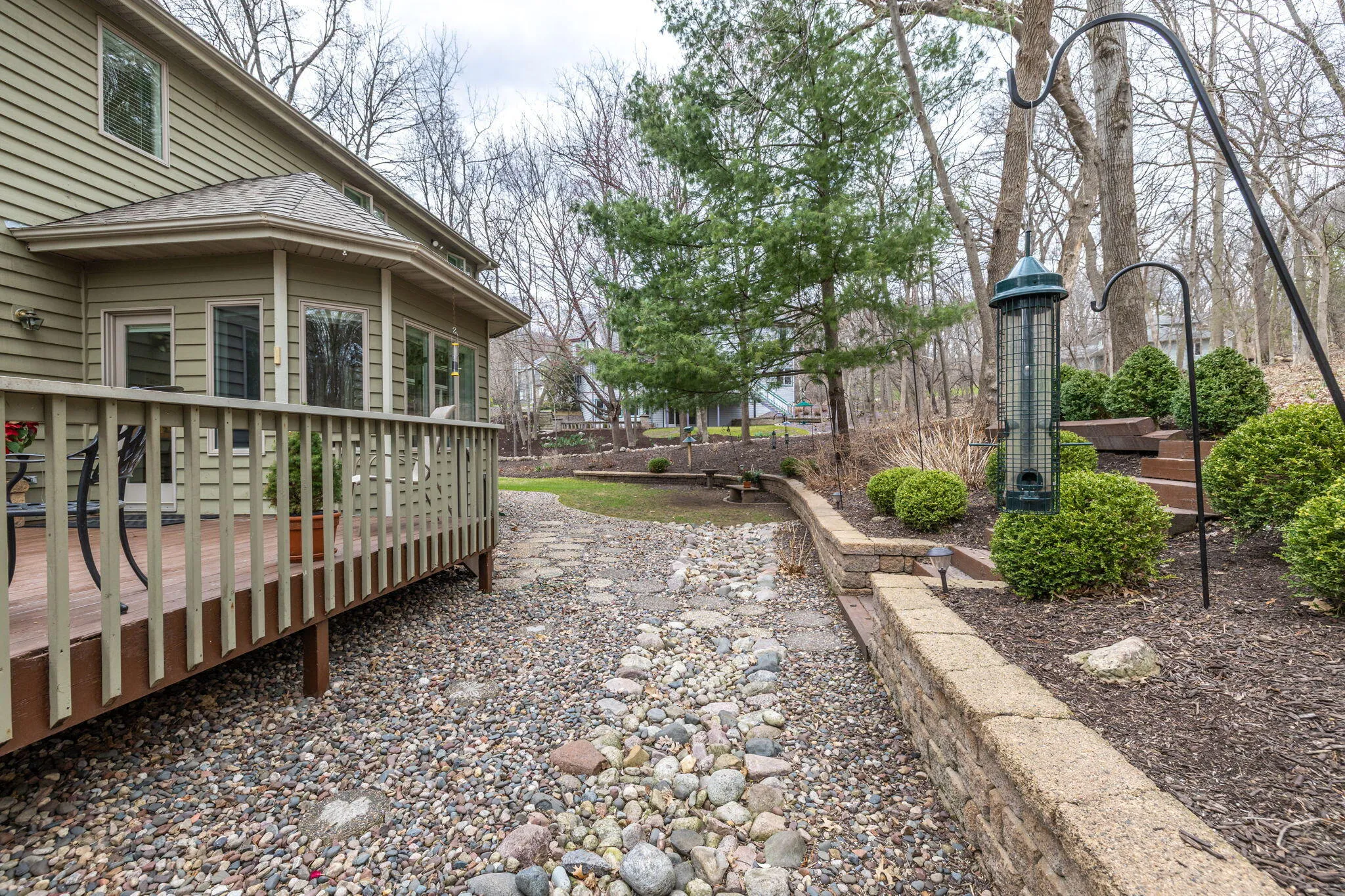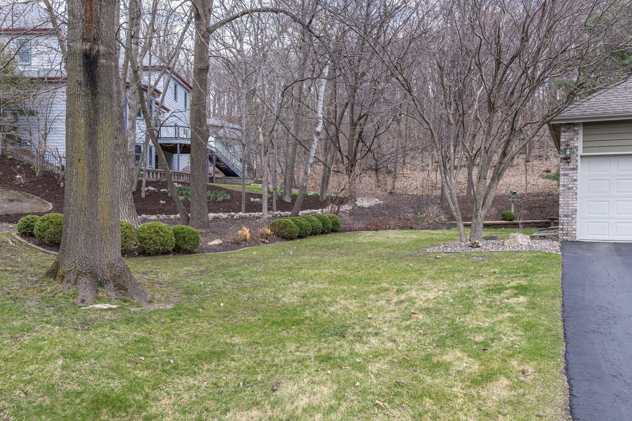 Set on a wooded .67 acre lot in Elmwood Hills, this home reflects years of thoughtful care and attention. The setting is a standout; with professional landscaping, mature trees, and private outdoor spaces- often with visits from wildlife. Quality construction and a functional layout define the home, with Andersen windows bringing in natural light and a built-in sound system carried throughout. The spacious kitchen includes a pantry and breakfast nook overlooking the yard, opening to a family room with a gas fireplace and wet bar. All bedrooms are up with a large laundry room nearby. The lower adds additional living space and a full bath. The garage is finished and heated, with stairs connecting to the basement. Located near a park and within the Eagle Bluff Elementary district.