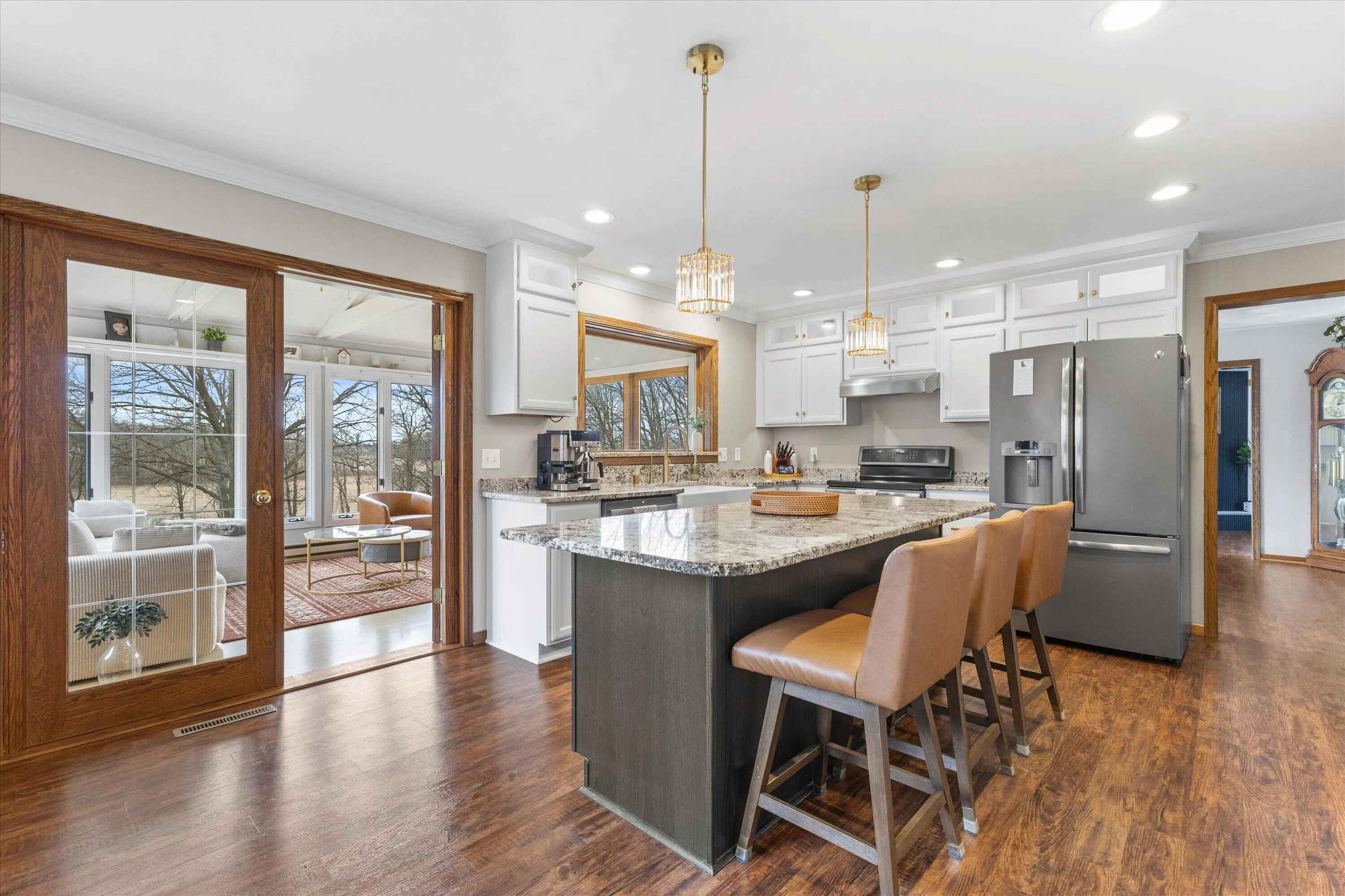 Step inside this beautifully updated home set on a scenic lot that feels like your own private retreat. From the moment you walk in, you’re welcomed by new vinyl wood flooring that flows seamlessly into a fully renovated kitchen featuring custom cabinetry & granite countertops.Just off the kitchen, a 4 seasons room & expansive porch overlook the backyard where open fields & wooded views create the perfect setting for slow mornings. The primary suite is a true standout, offering a spacious walk-in closet & a bathroom designed with comfort and functionality in mind. You’ll love the 4-car garage with high ceilings & additional storage above; ideal for hobbies, toys, or extra space. This one truly offers the space, setting, & updates buyers are looking for; come see it for yourself.
