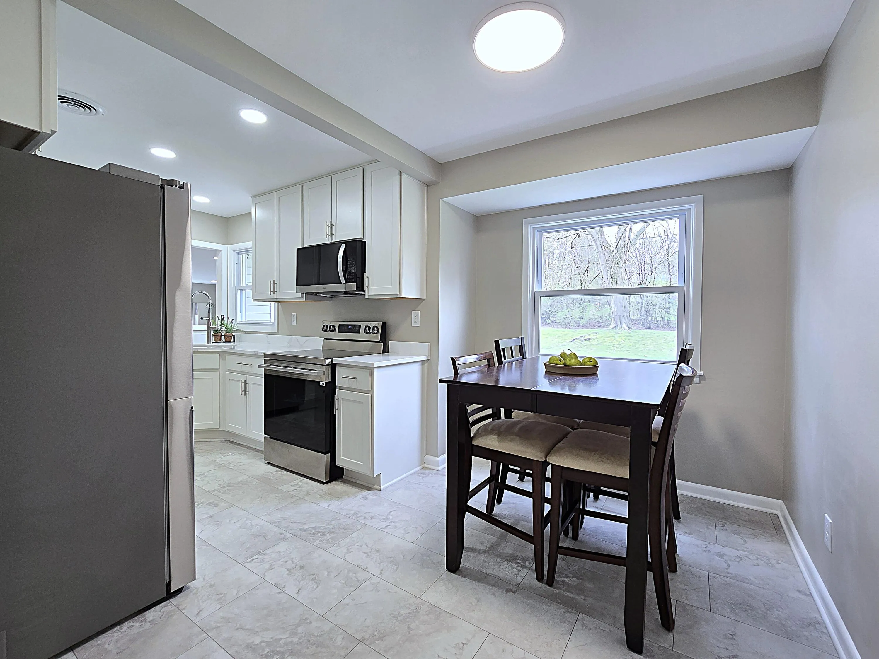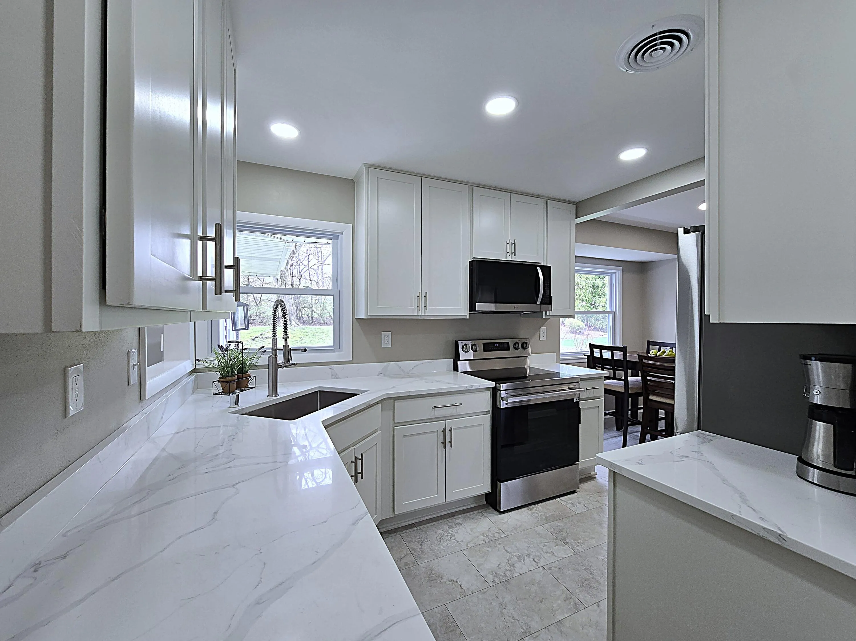 Updated and immaculate, this clean three bedroom ranch has a roomy layout and is move-in-ready for its new owner! An all-new kitchen boasts new cabinetry, stylish quartz counters, sleek stainless steel appliance package, and a handy dinette space. Handsome dark-stained refinished hardwoods adorn the living room and ample bedrooms. A spacious family room adds a sizable living space with patio access and backyard walk out. The remodeled full bath serves the main and showcases a new tiled surround. A rec room in the lower level adds even more space to relax or entertain. A new roof, new furnace, new central air, & new windows are already in place for peace of mind and ease or ownership. Enjoy hanging out on the back patio on nice days overlooking to lovely back yard. Great location, must see!