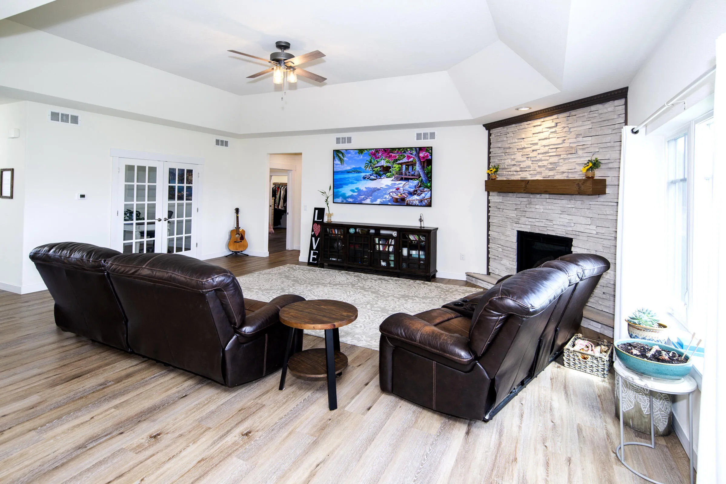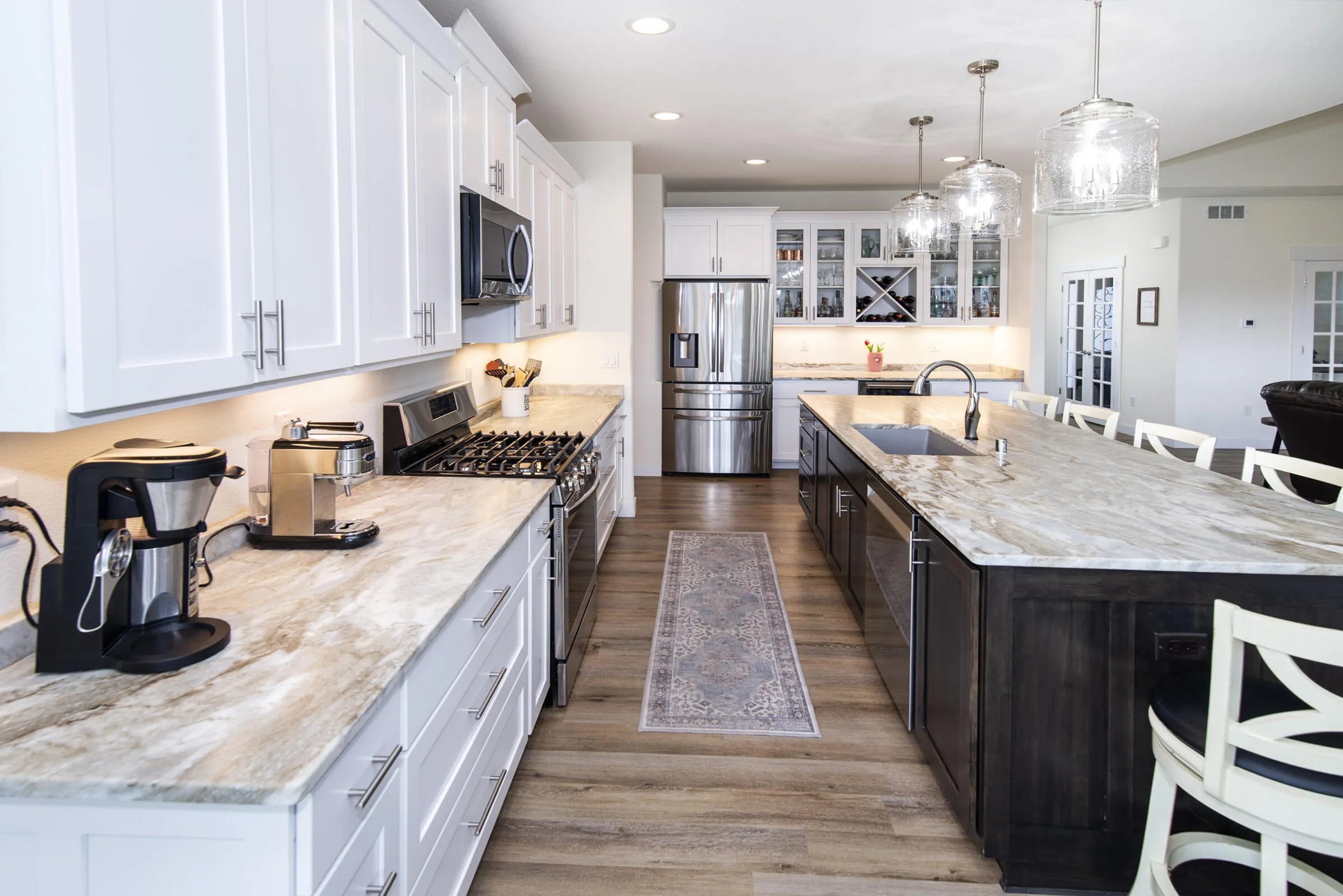 Enjoy 3,700 square feet of open-concept living with LVP flooring throughout both levels! The bright kitchen features a large island, soft-close cabinetry, beverage cooler, large pantry. and spacious dinette with a gorgeous view of the yard. The primary suite offers a tray ceiling, walk-in shower, and custom closet linked to the laundry room. Spacious family room with 2-foot tray ceilings and gas frpl. Leave the mud in the mudroom with spacious built in lockers, sink, and granite countertops. Jack and Jill style bathroom connects two bedrooms on the main. The finished lower level includes a massive rec room, gym, full bath, full bedroom, secondary dinette and plenty of storage space! Outside, enjoy your very own butterfly garden! All appliances and a 1-year home warranty included!