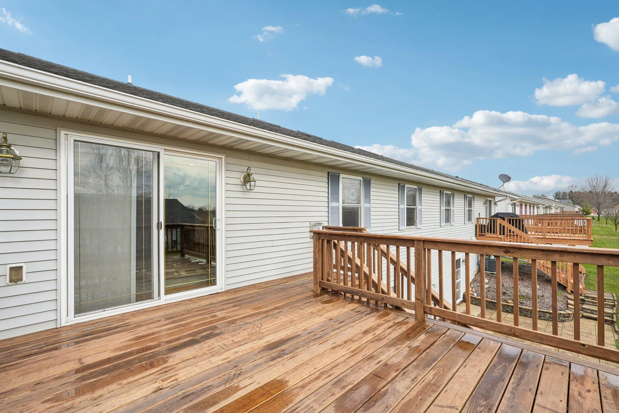 Beautifully appointed open concept side-x-side ranch condo w/finished walk-out lower level. This well-maintained 2-Bed/3-full bath condo offers a private entrance, vaulted ceilings, natural lighting, spacious kitchen, abundant cabinets w/snack bar. The bright and airy dining area flows into the living room, complete w/gas fireplace & patio doors leading to a large deck space. The master suite includes dueling closets w/private bath. Main floor laundry-room provides convenience. Finished lower-level w/walk-out to patio boasts a large rec room perfect for entertaining family events. Newer Appliances, Central vac & Radon system, deep 2.5 car garage, plentiful storage including a work shop. This must see, move-in ready condo offers the perfect mix of comfort, space, and low-maintenance living!