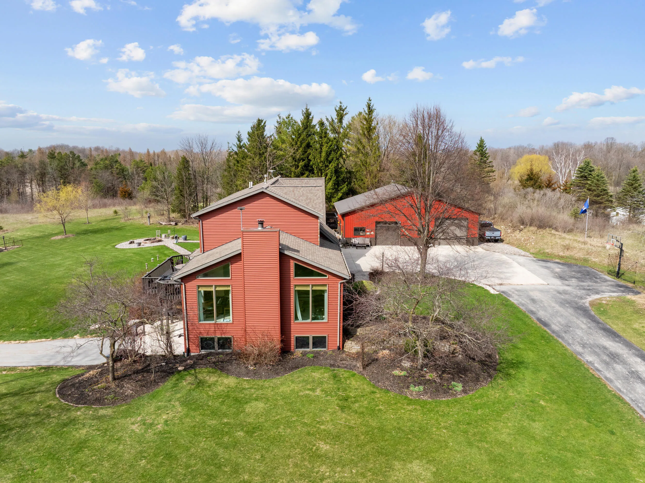 Beautiful property near Elkhart Lake featuring over 3,400 sq. ft. and spanning over 37 Scenic Acres! This 4-bedroom, 4 bathroom two-story home features a finished walkout lower level and breathtaking nature views from every window. Ideal for outdoor enthusiasts, with established trails and an enclosed deer stand already in place. A 36×48 outbuilding offers a partially finished, insulated workshop plus additional space with an 11-foot overhead door. Conveniently located just minutes from Elkhart Lake, near Kohler, and within an hour of Milwaukee and Green Bay–this is a property you truly need to experience.