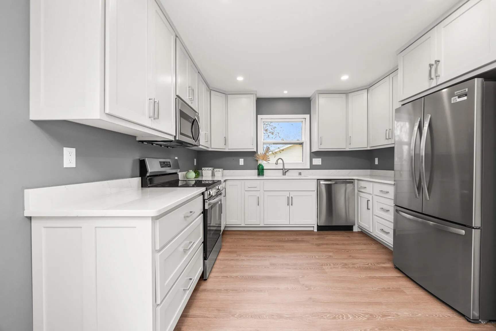 This welcoming 3-bedroom, 1.5-bath colonial blends charm with thoughtful modern updates. The newly renovated kitchen stands out with custom maple cabinets, sleek quartz countertops and durable new LVP flooring that flows through the main level. All three bedrooms feature beautiful hardwood floors, adding warmth and character throughout the upper level. Major exterior improvements — including a new roof and siding in 2022 — provide peace of mind for years to come. Natural light fills each room, highlighting the home’s classic style and comfortable layout. A wonderful opportunity for anyone seeking a move-in-ready home with quality finishes and long-lasting updates.