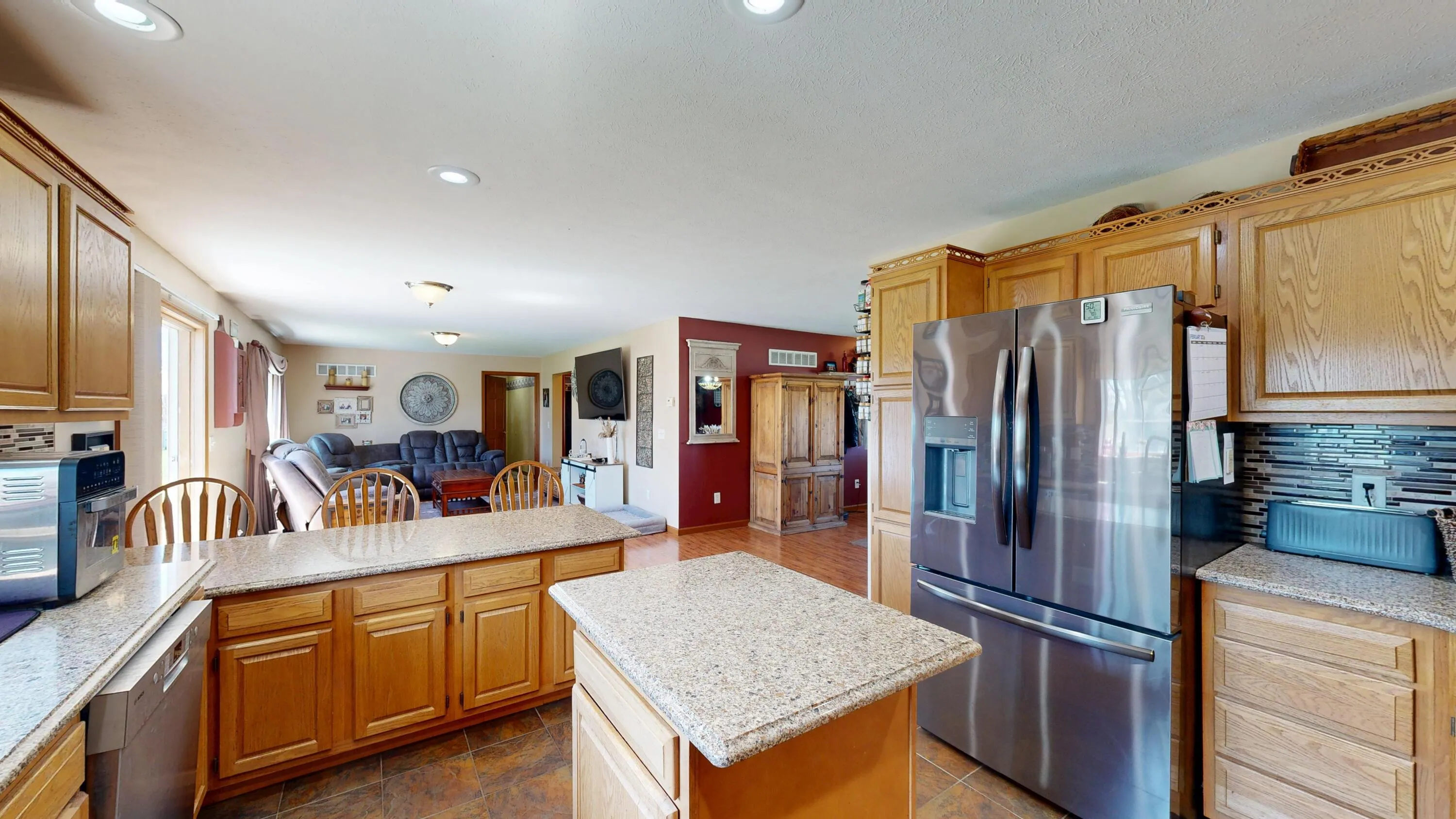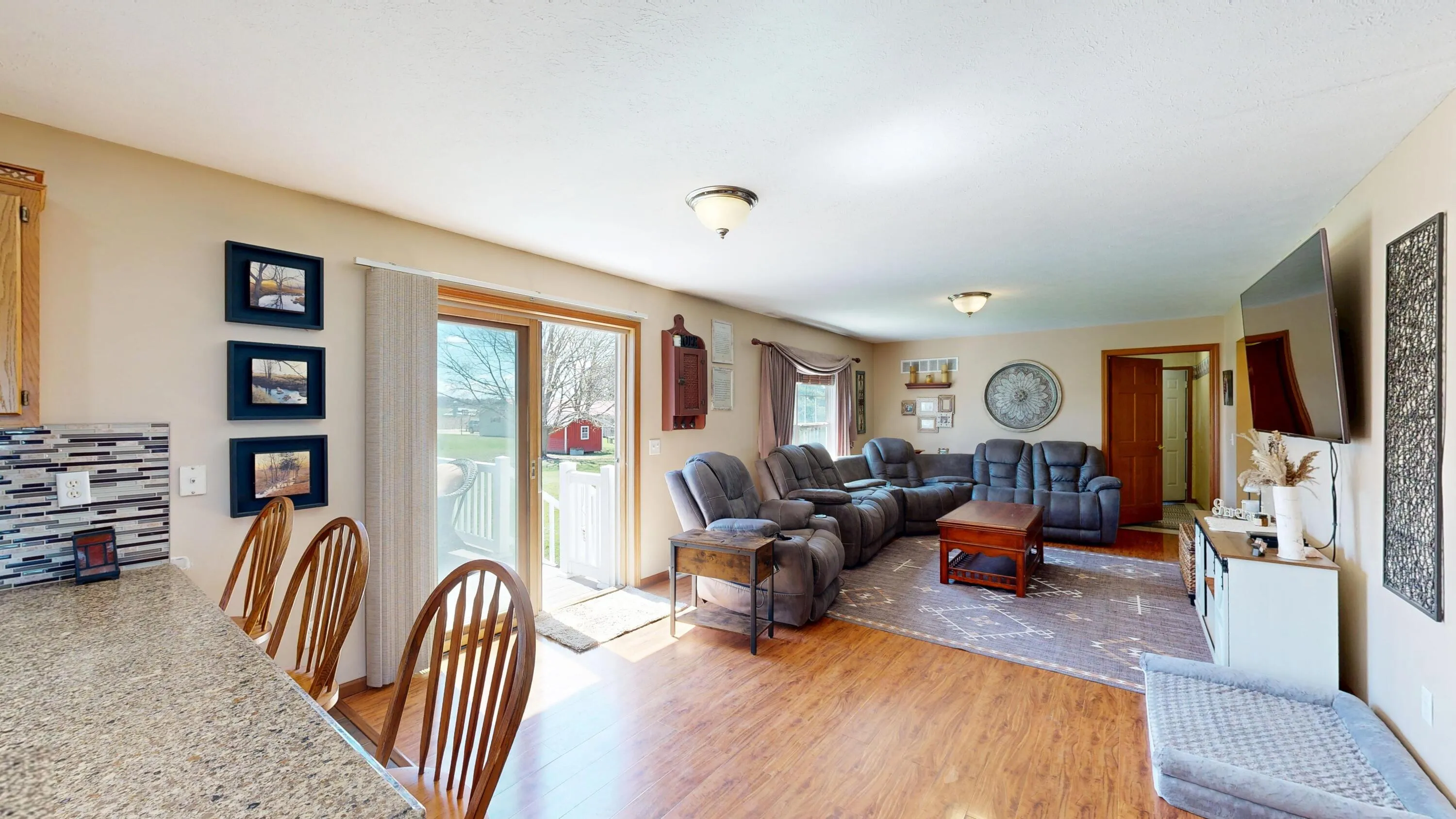 Spacious home in a quiet neighborhood, just minutes from Westby! The main level features a large living room, kitchen, dining area, and a primary suite with private bath and walk-in closet. An additional two bedrooms and a full bath are also located on the main level. The finished lower level offers a fourth bedroom, full bath, family room with a built-in bar, and walk-out patio access, perfect for entertaining. Enjoy a generous front and back yard with a fire pit, back deck, and space for gardening or play. The attached 2-car garage plus an additional detached 2-car garage provide ample storage and versatility.