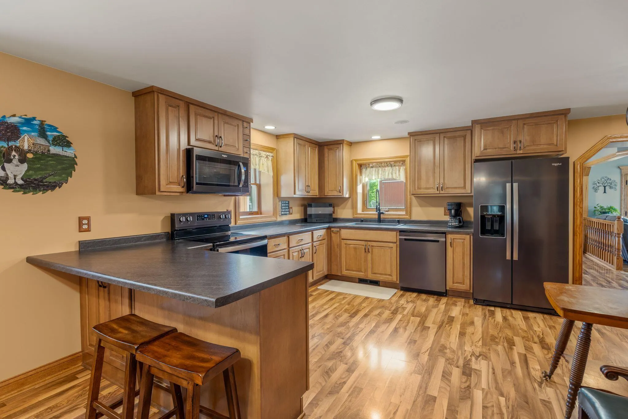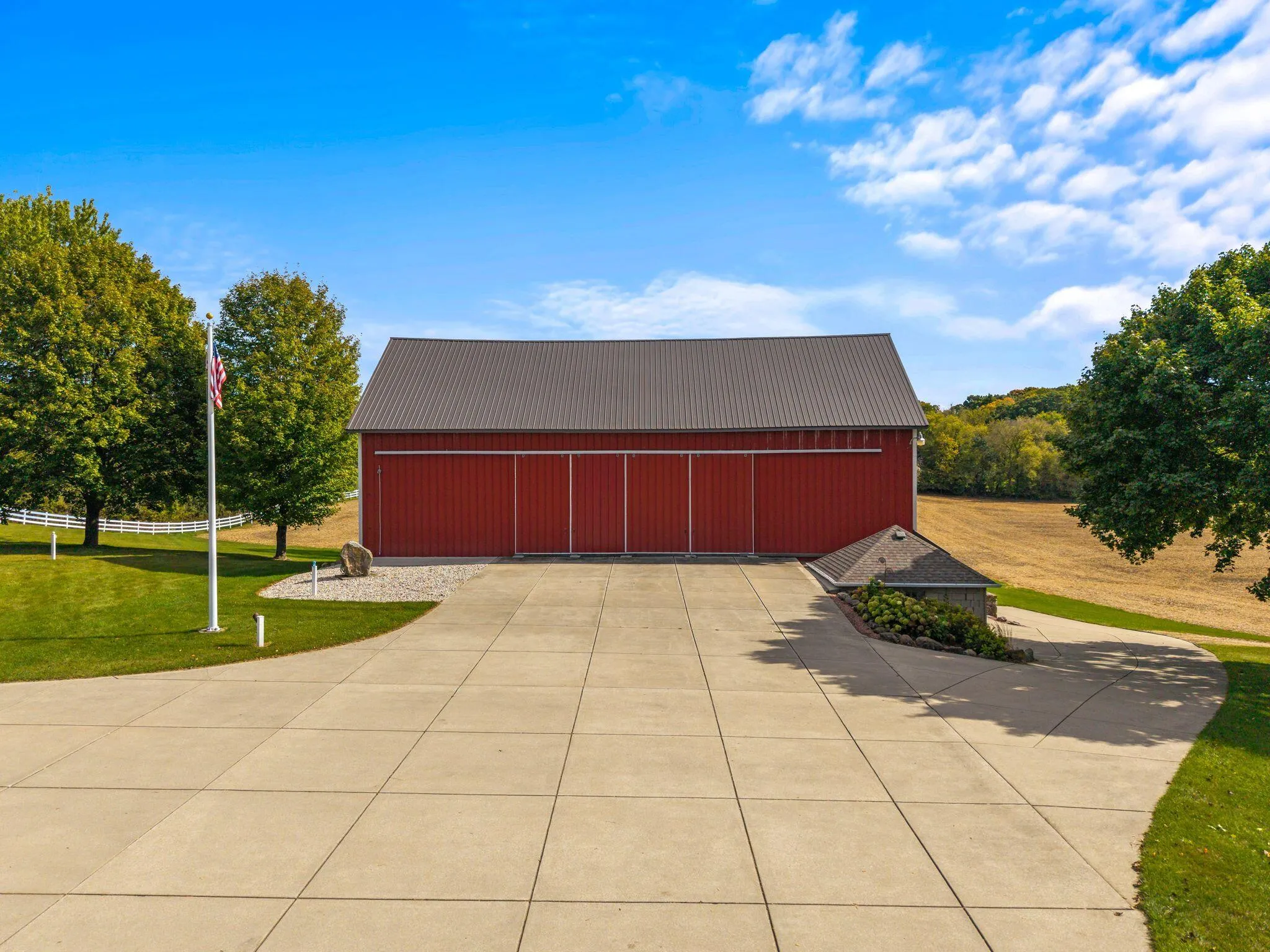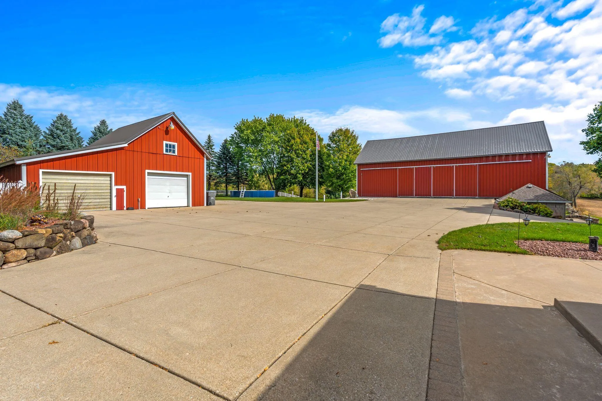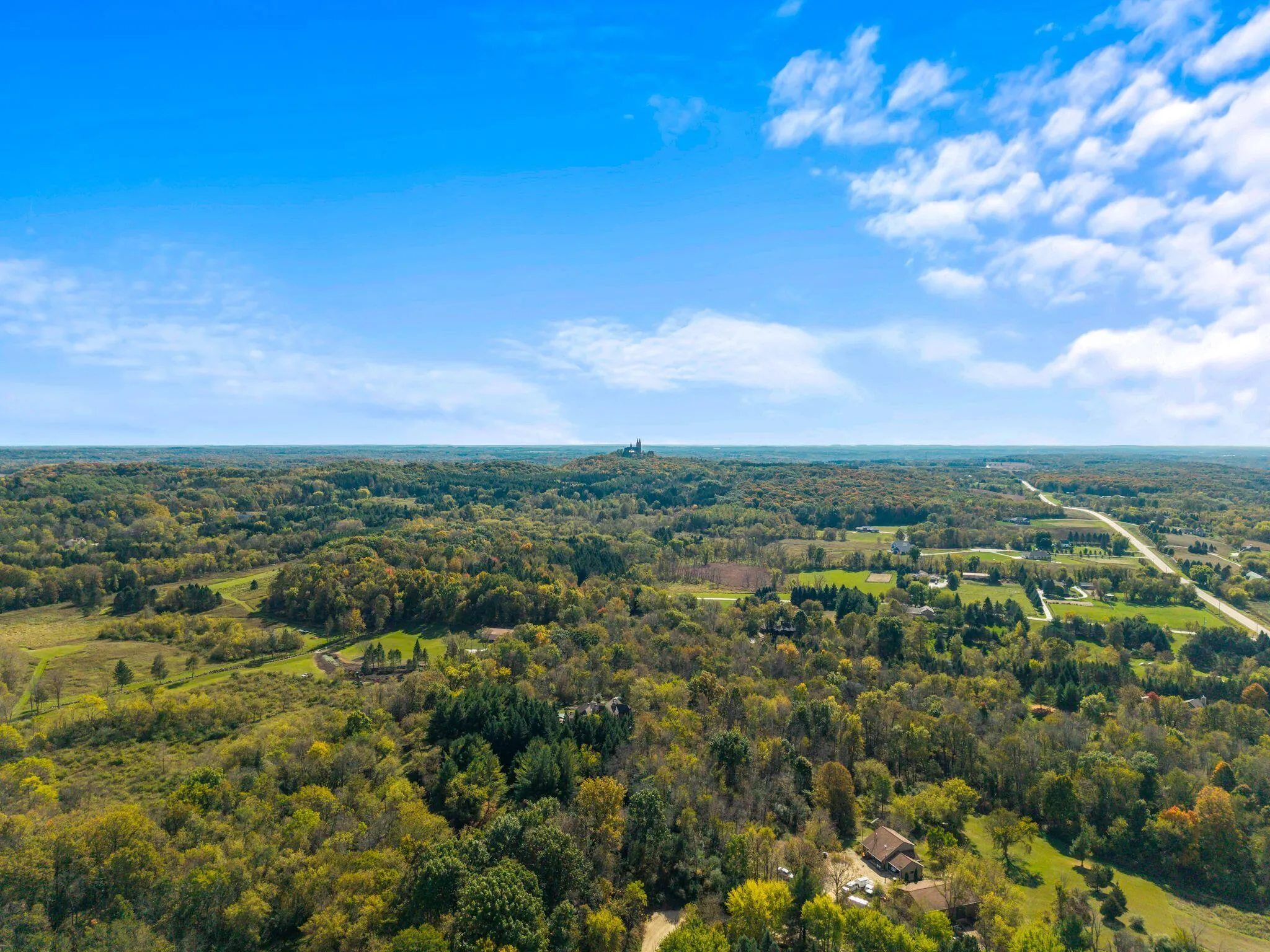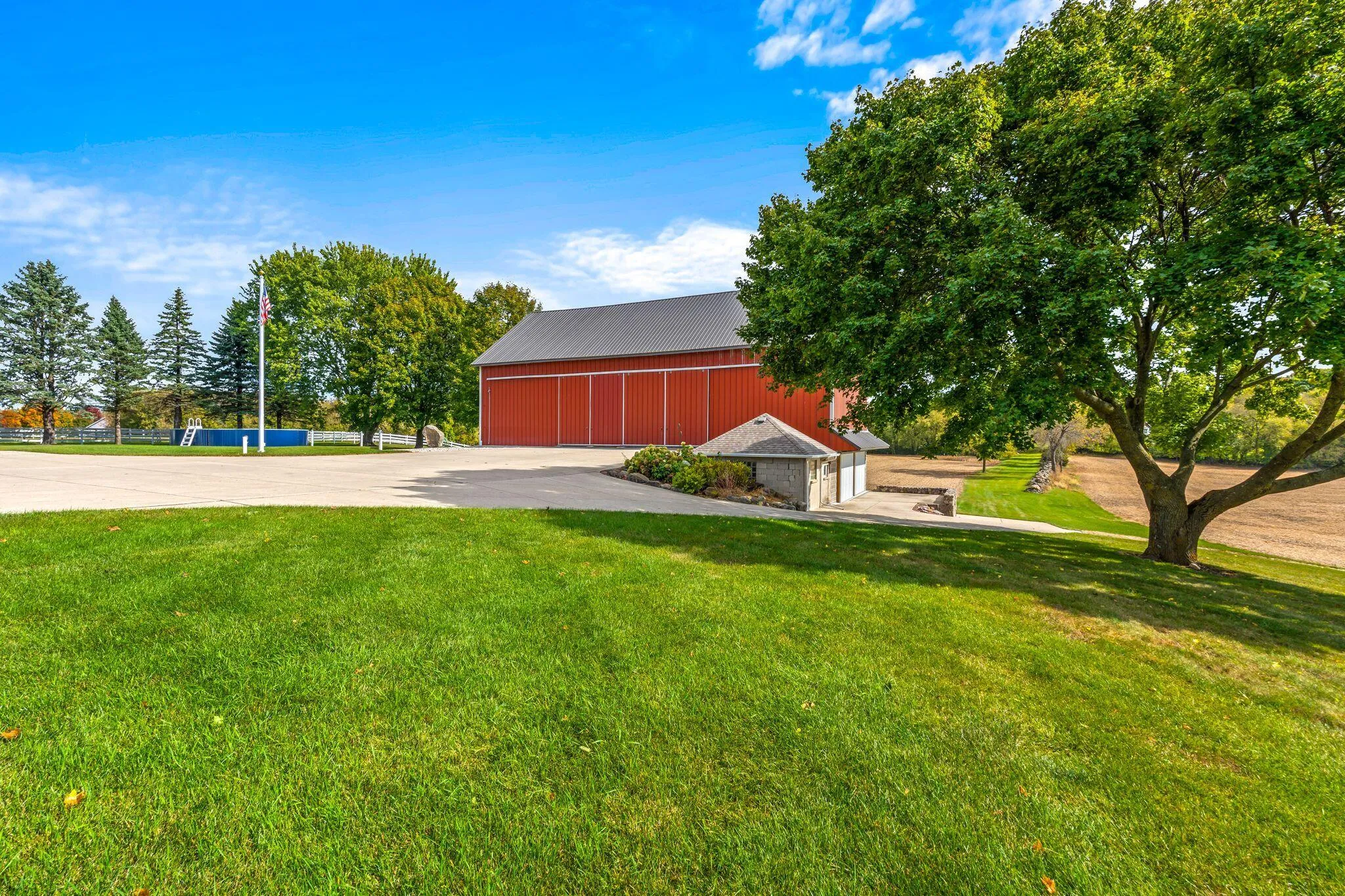 Charming and immaculate 15-acre property with rolling hills and views of Holy Hill! This property is in exceptional condition and includes a 4 bed, 2 full bath spacious farmhouse which has been nicely renovated over the years, and the kitchen was updated within the last year. There are multiple garages/outbuildings, including a barn, which has been updated with newer metal siding and roof, and concrete flooring and sliding doors on the first floor. So much garage/storage space for all your vehicles, toys and collectibles! Even a unique pool made from a blue silo… So cute! The possibilities are endless – could be perfect for a hobby farm, extra space for your workshop/business, or peaceful country living with abundant wildlife watching! Perhaps even split off and build another home!