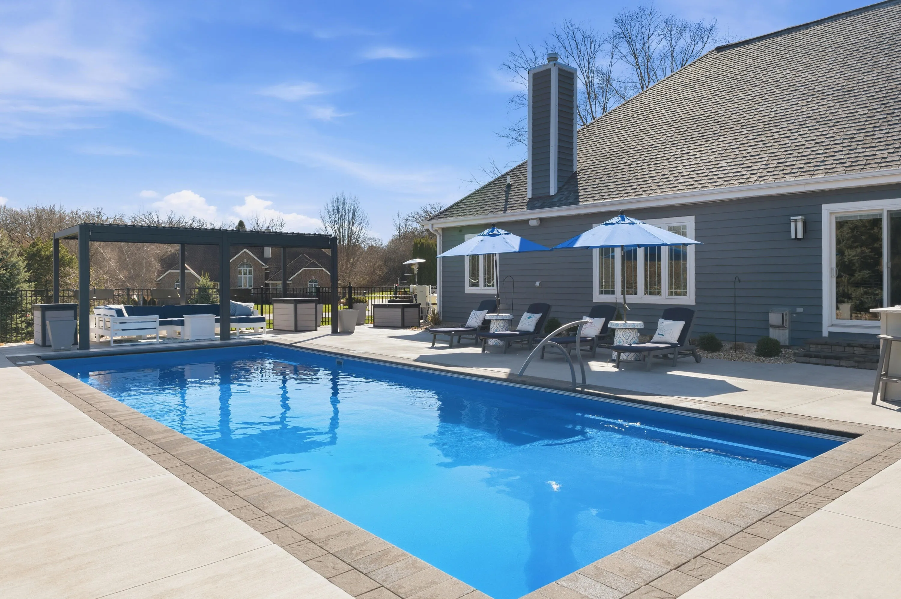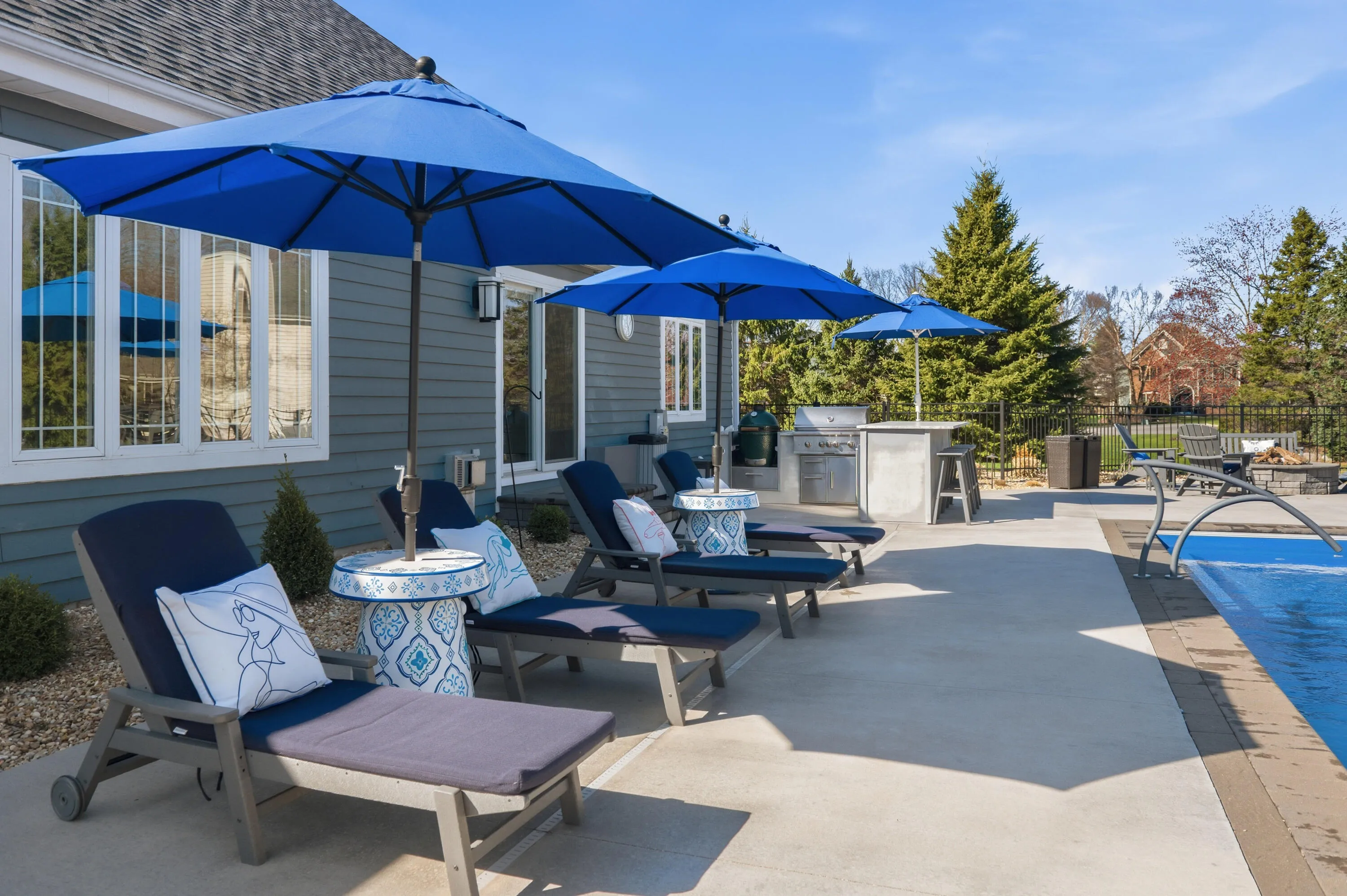 Stunning home on a corner lot in a quiet cul-de-sac with a true resort-style backyard. Enjoy a beautiful, modern in-ground pool (2022) with all-season power cover, expansive patio, outdoor kitchen, pergola, and firepit–perfect for entertaining. Inside, a thoughtfully designed layout features a luxurious primary suite with a spa-like bath, including a steam shower and Kohler DTV+ system. The chef’s kitchen offers an expansive island, abundant counter space, and custom cabinetry. Finished lower level with second kitchen, large living area, wine room, exercise room, additional bedrooms, and full bath. Exceptional indoor-outdoor living in a highly desirable location.