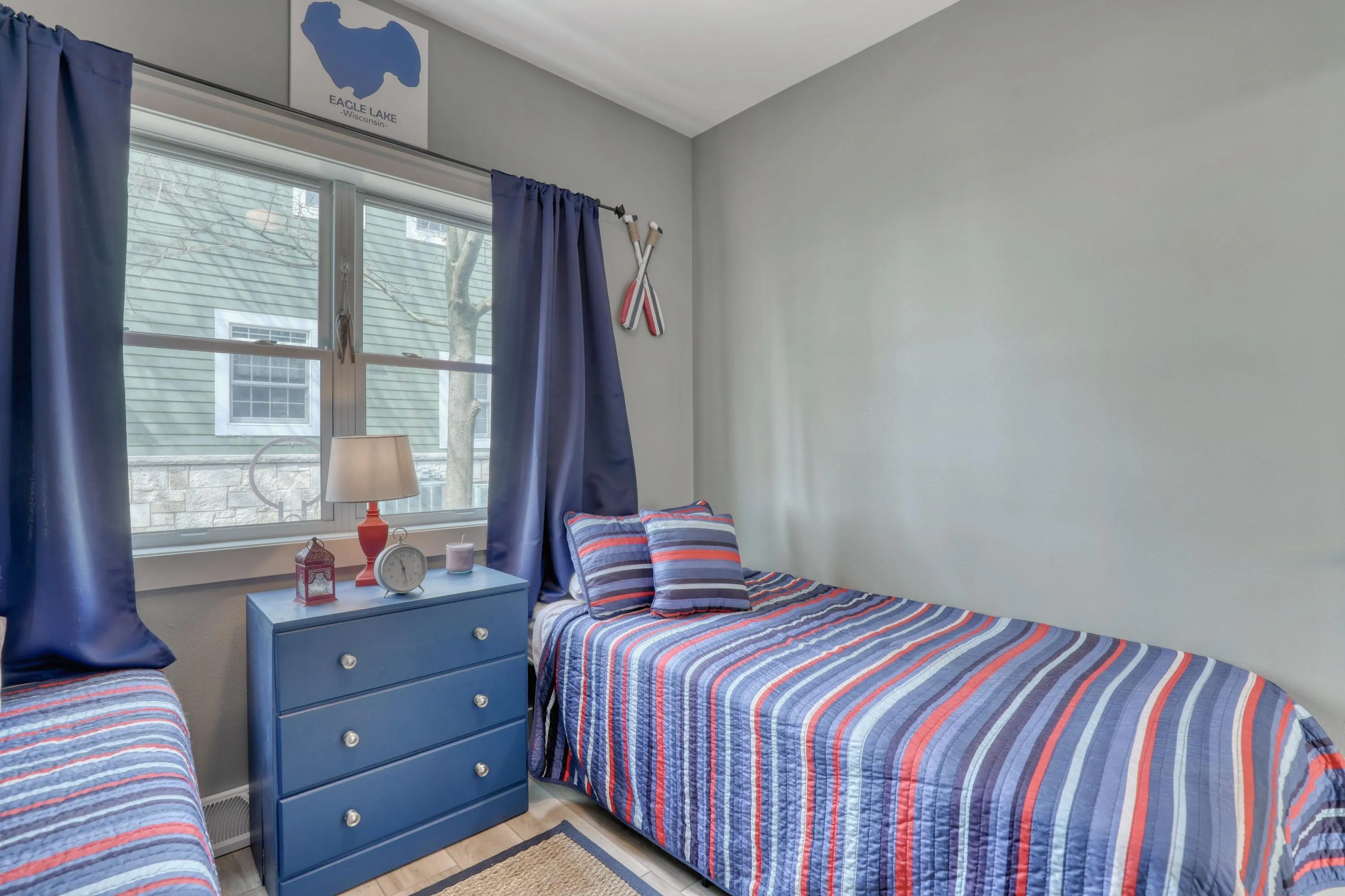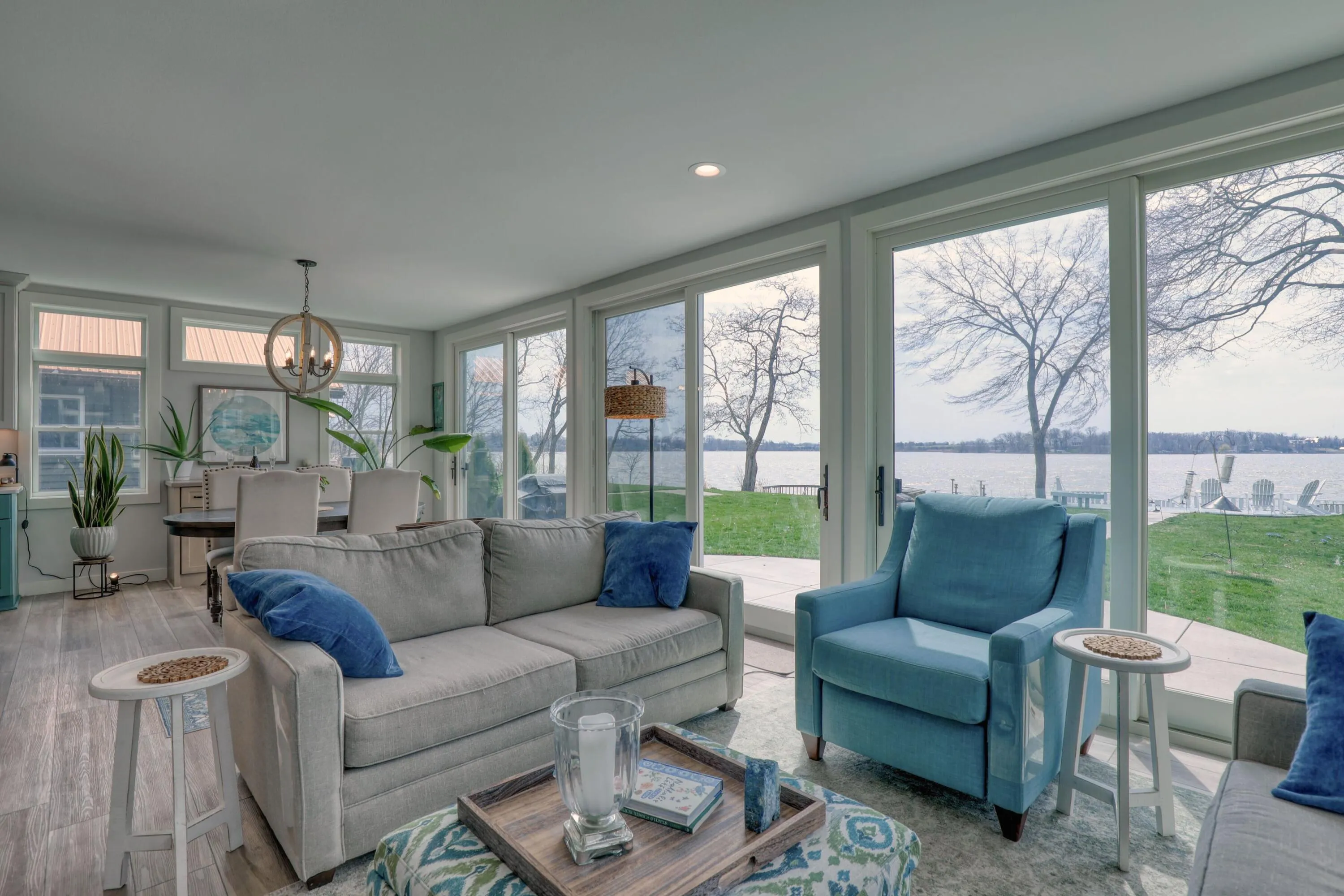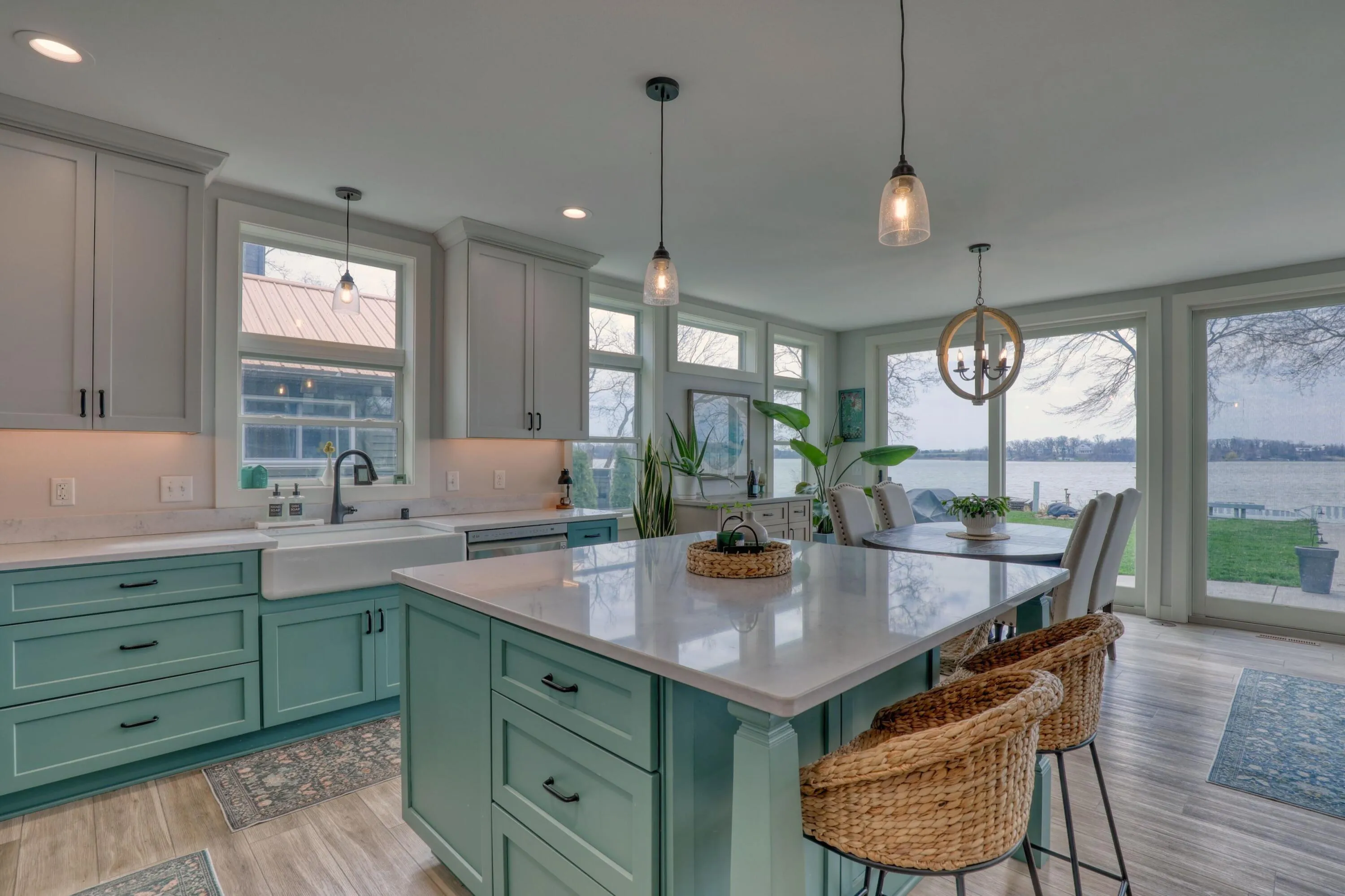 Discover your private oasis on the shores of Eagle Lake! Charming New Construction 4 Bed, 2-bath home offers the perfect blend of serene waterfront living and exclusive community amenities. Located on a no-thru street in the sought-after Pan Yack Park subdivision, this property provides breathtaking panoramic lake views. The primary suite is its own retreat on the entire 2nd floor that includes a private balcony, WIC, Den, luxury bath, & office. Vaulted ceilings and a wall of windows maximize the gorgeous water views. 60 feet of frontage with sunny southern exposure. Beautiful finishes throughout like durable LVP flooring, quartz counters, GFP with stone surround flanked by built-in bookcases, and stylish cabinetry. Basement has egress windows and is plumbed for a future bathroom.