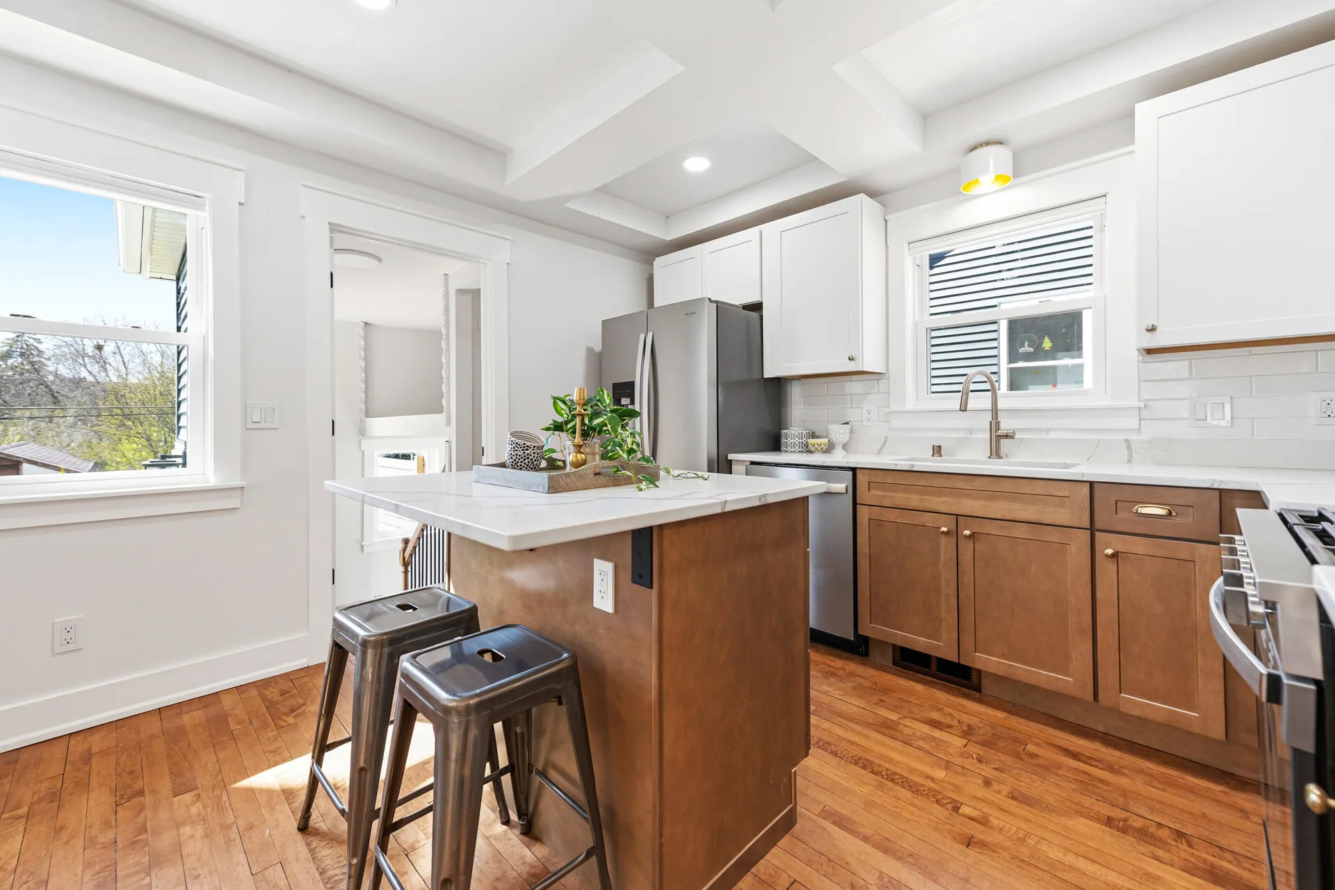 Welcome to Bay View and this like new construction home in a vibrant neighborhood. Oversized front porch welcomes you in. This beautifully updated 3-bedroom, 2.5-bath residence offers modern comfort with a fresh, curated design that blends classic finishes and modern touches. The heart of the home is the gorgeous kitchen with island. Featuring quartz countertops, Kohler and Whirlpool appliances, while maple hardwood floors add warmth throughout. Entertain in large dining room with views to newly fenced yard, perfect for relaxing or entertaining. Luxe primary suite is all new. Two additional bedrooms, full bath with beautiful marble tile and laundry completes the second floor. Major updates include new roof, siding, windows, electrical, HVAC, plumbing and more! Truly like new!