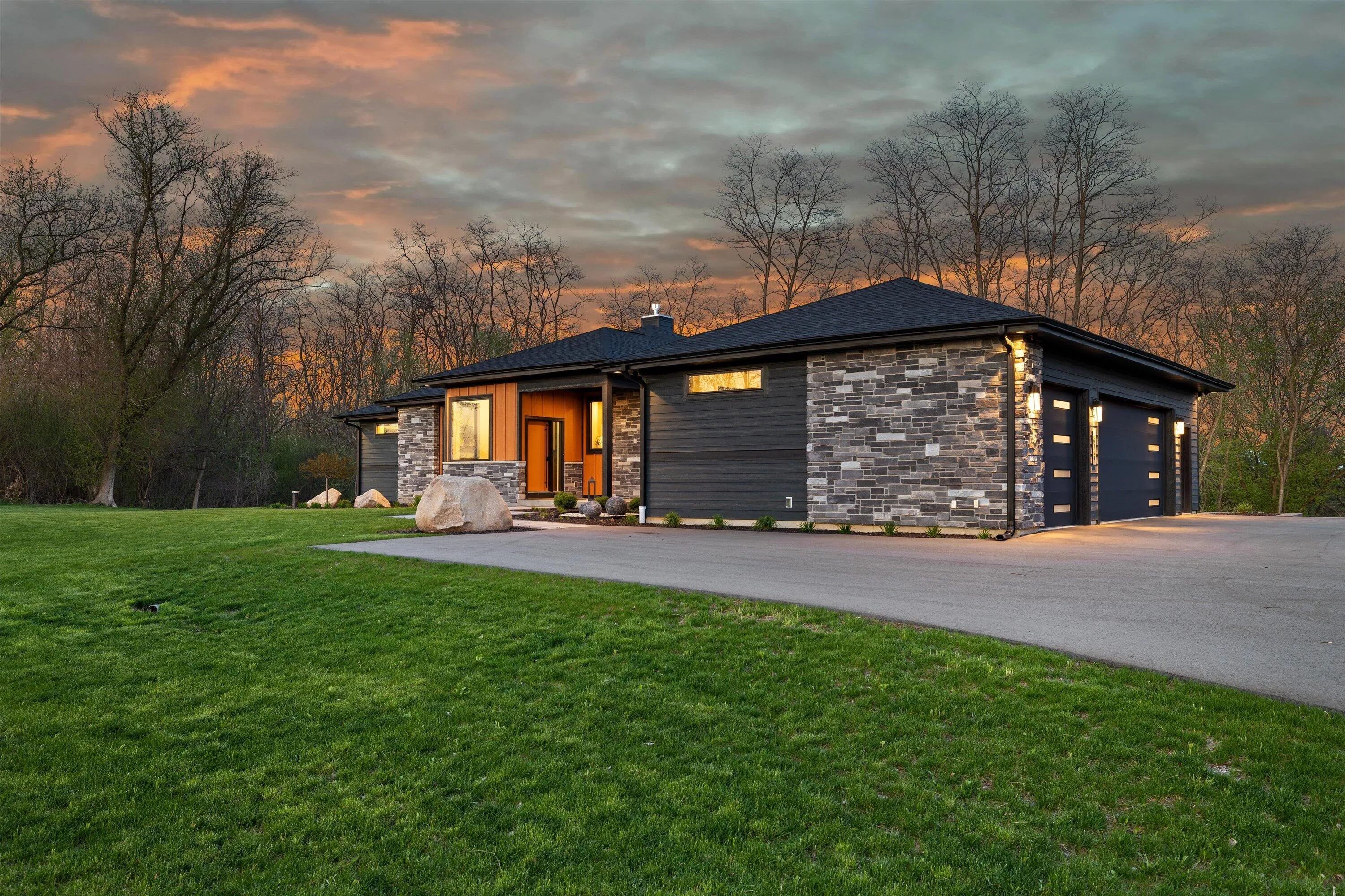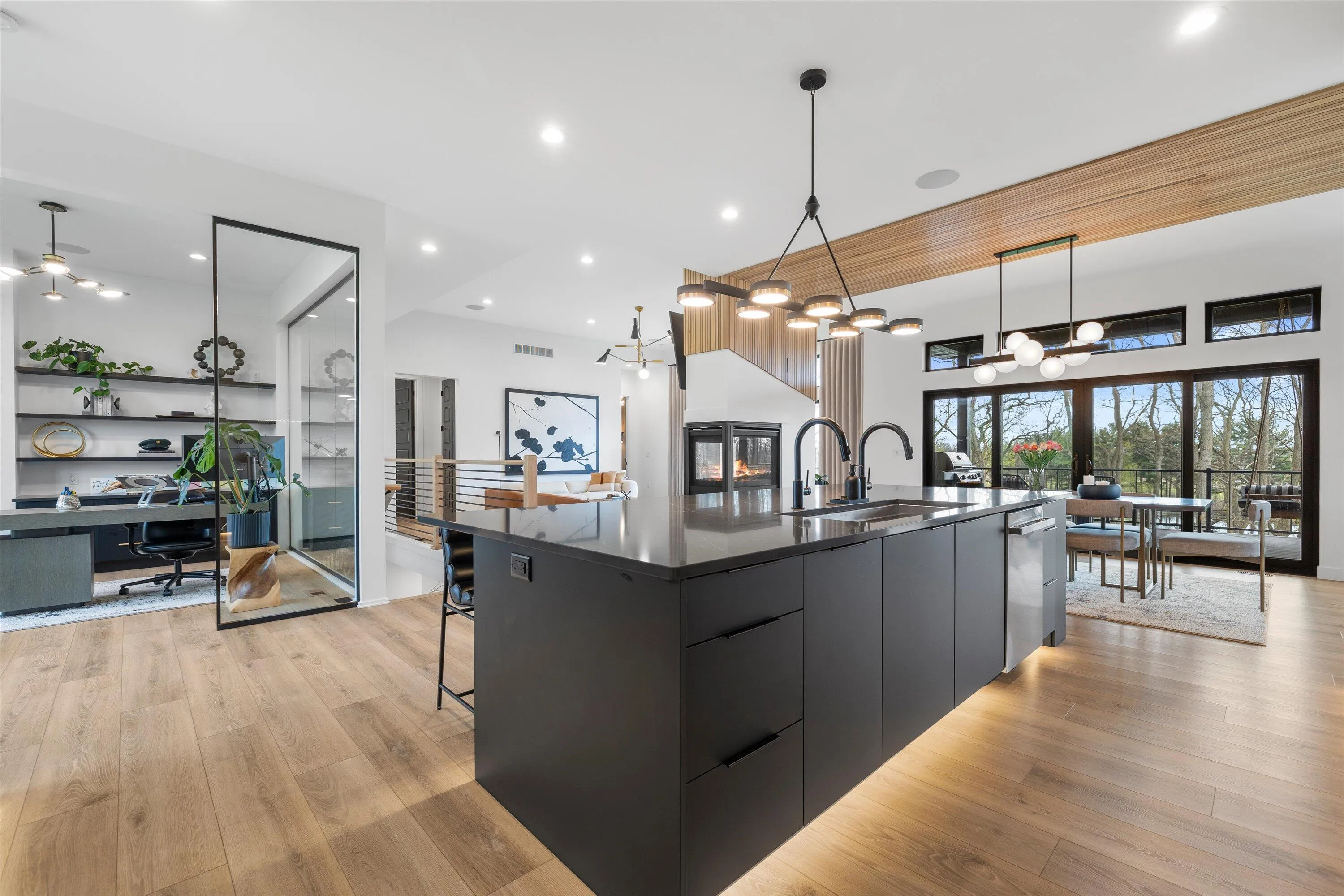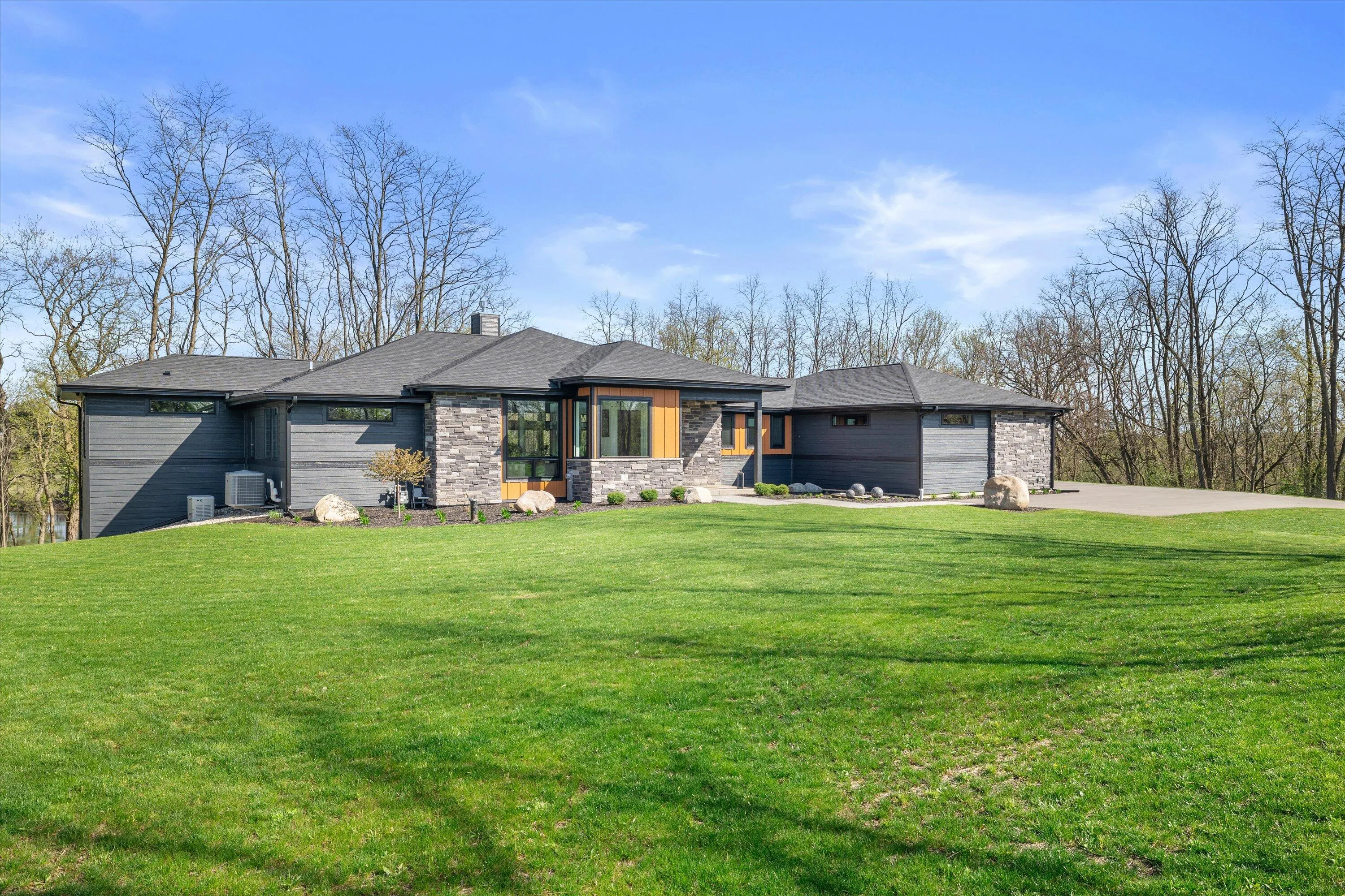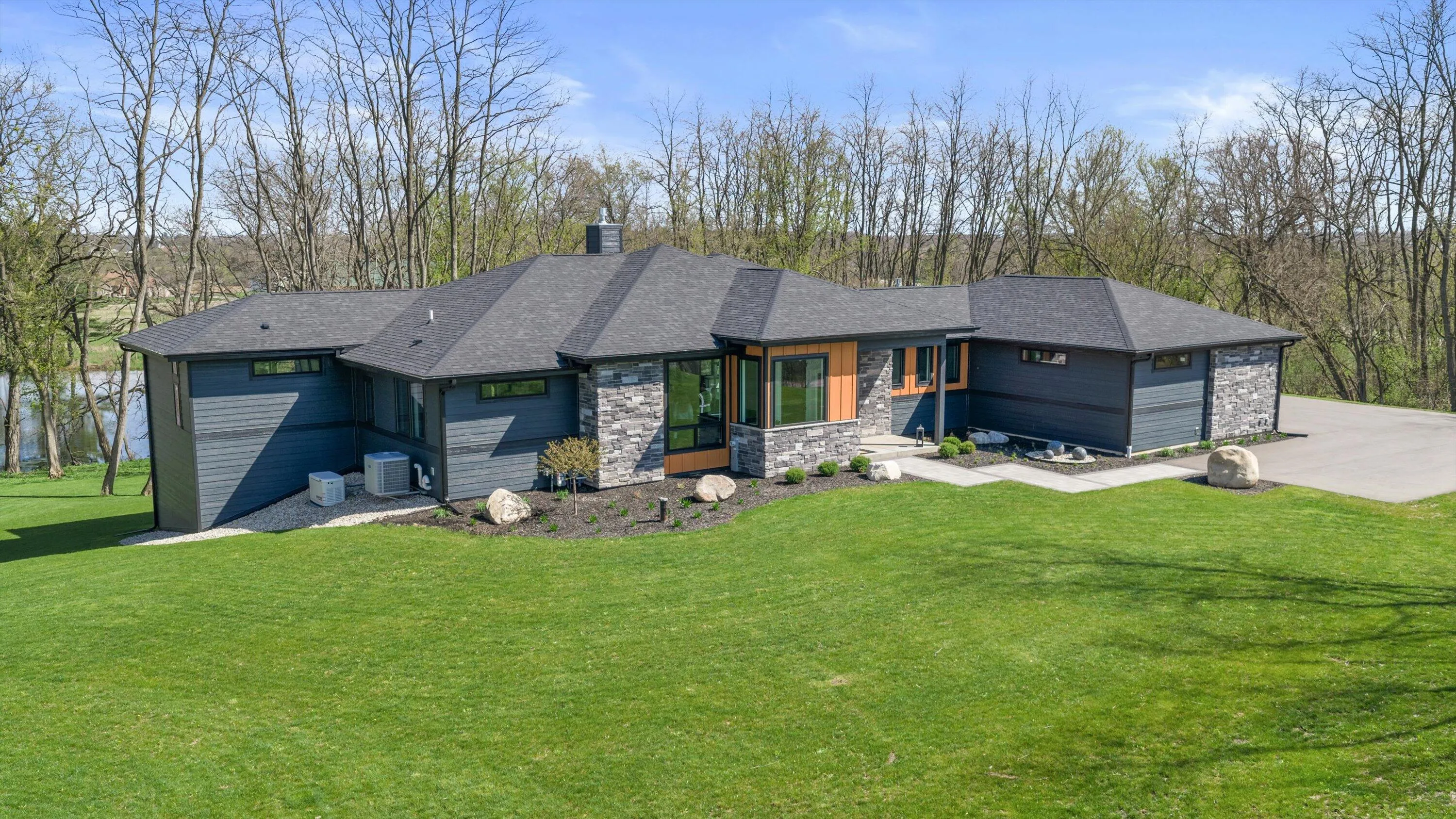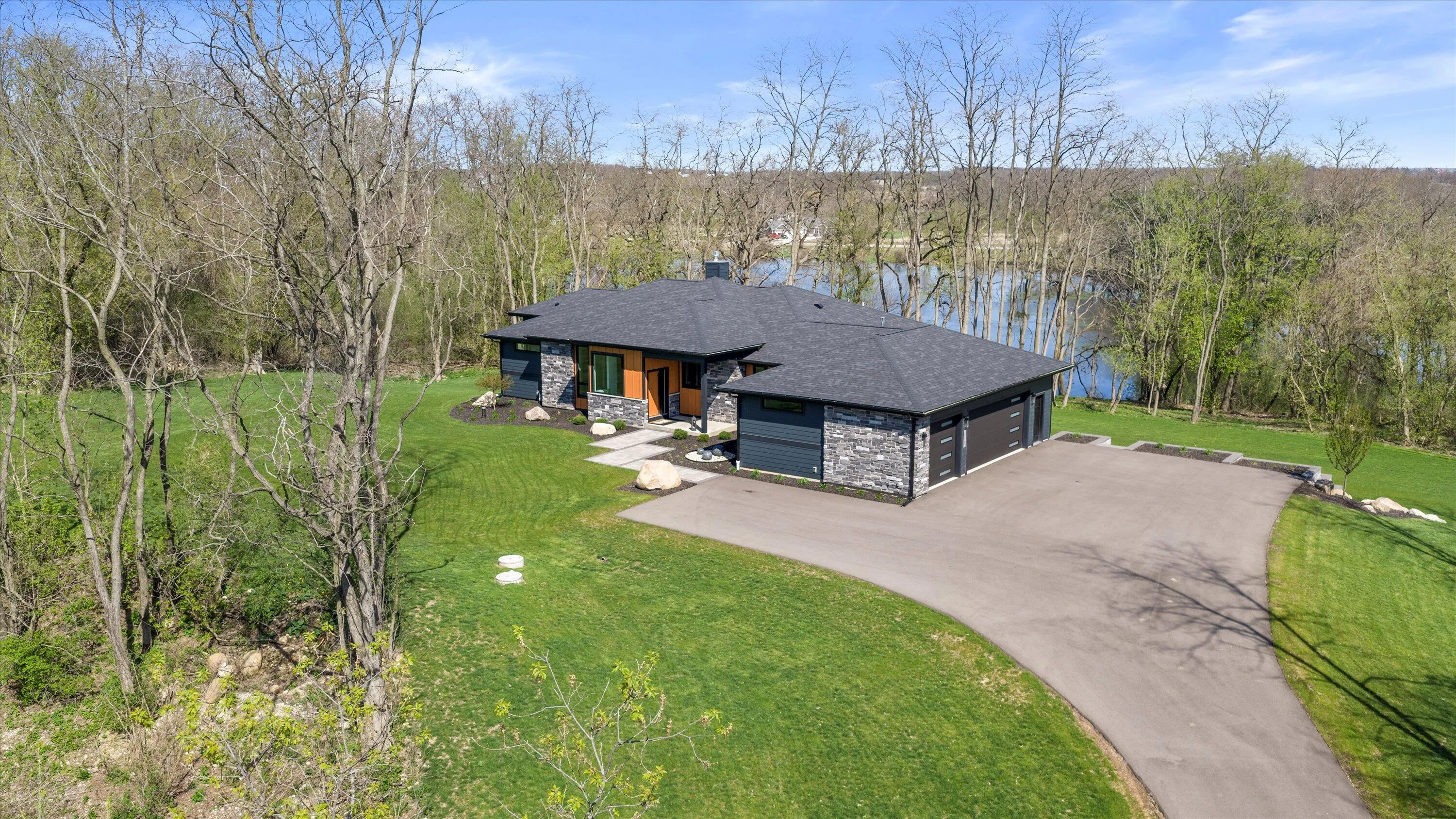 Introducing Milwaukee Magazine’s 2024 Best Of Homes & Design Award Winner and Midwest Design Notable Large Kitchen Design By Interior Designer Natasha Jones! Buyers will love this modern contemporary home with warm tones and wood finishes complete with modern lines. Stunning award winning contemporary kitchen is the centerpiece of this new build and open to the living spaces with soaring ceilings and floor to ceiling windows that flood the space with natural light in tranquil rural setting! Private office is a unique glass enclosure. Loads of storage with walk-in scullery and back hall mudroom. Exposed lower level has two additional bedrooms, full bath, spa and workout area and great entertaining space with views of the pond. Essential 3.5 Car garage. and expansive yard. Such a find!