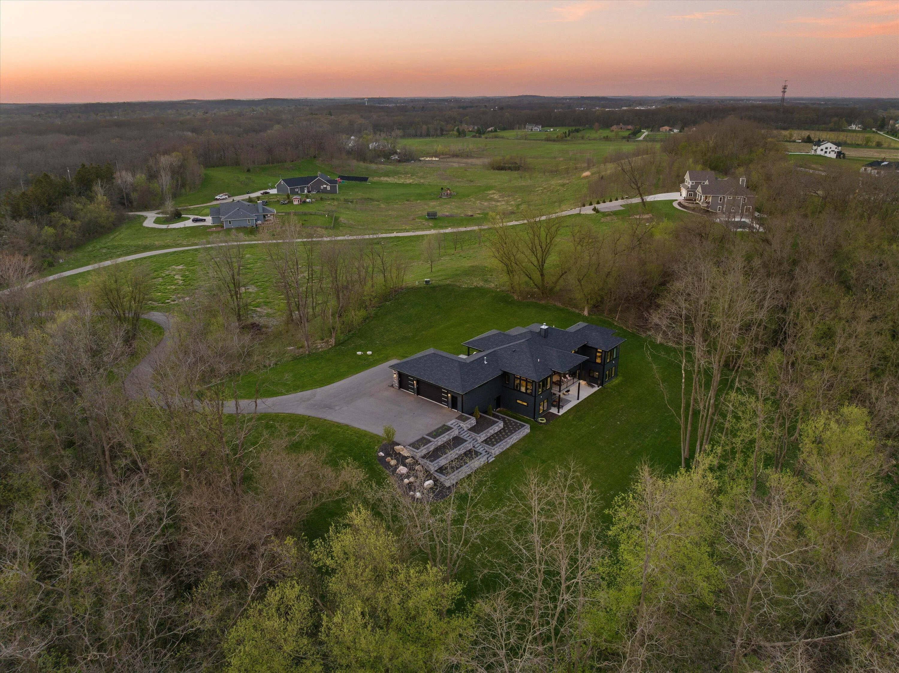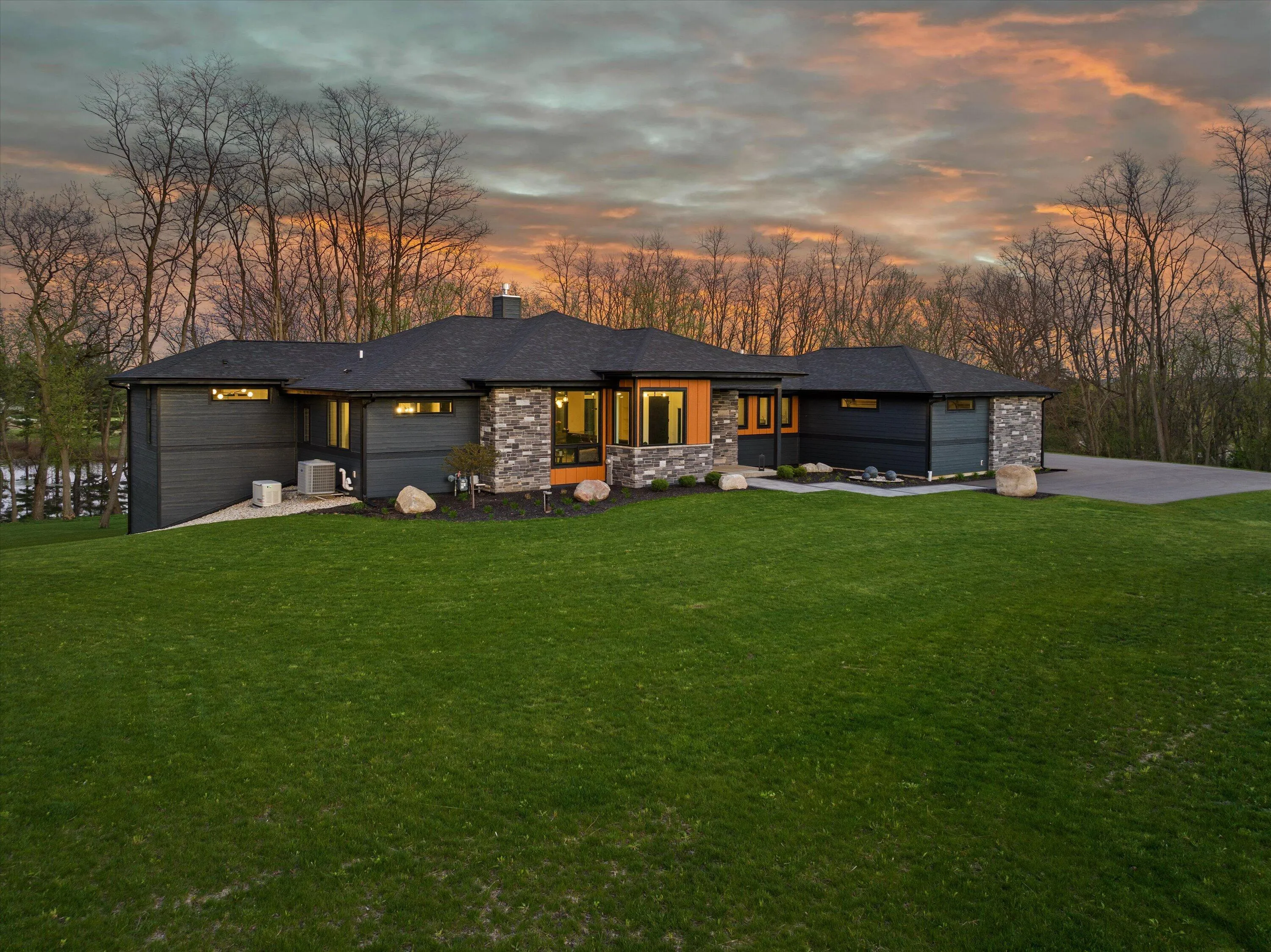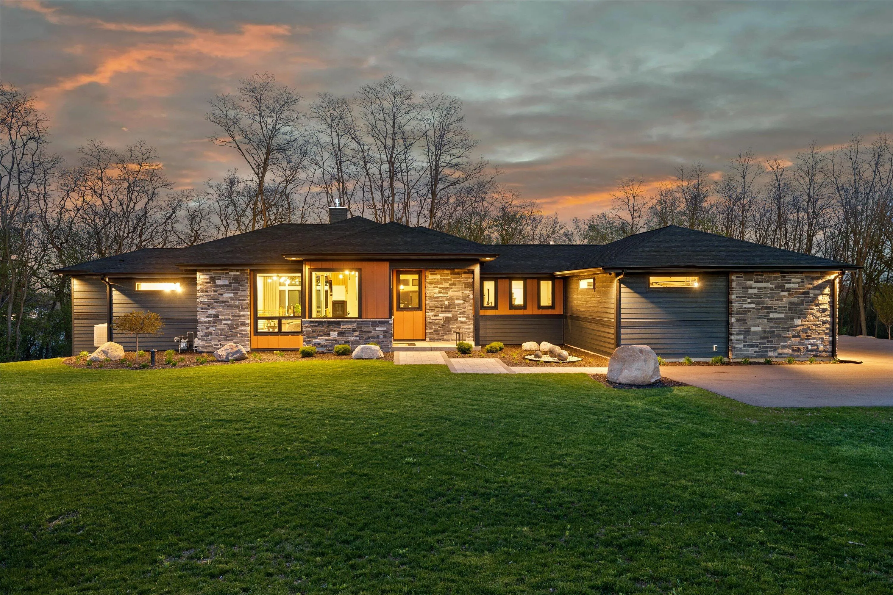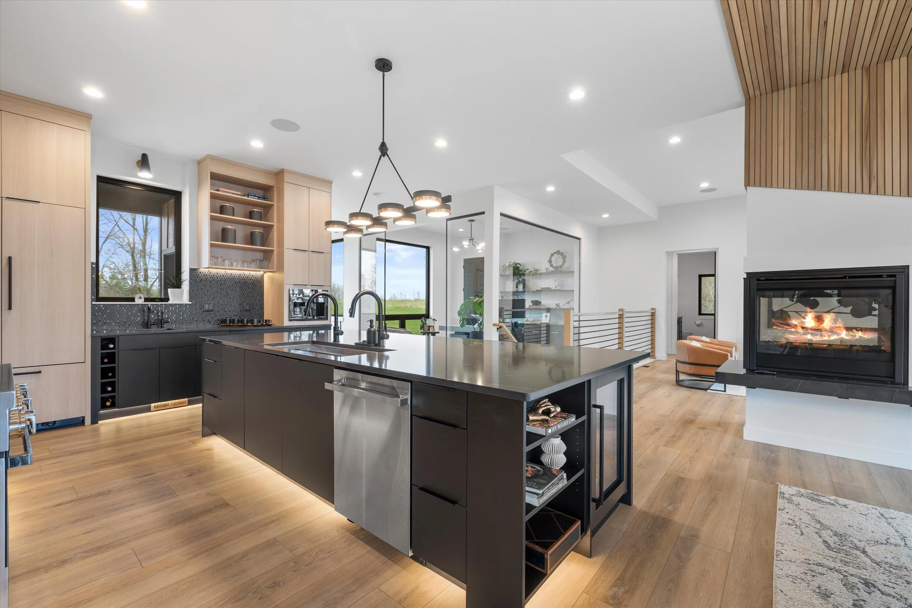 Introducing Milwaukee Magazine’s 2024 Best Of Homes & Design Award Winner and Midwest Design Notable Large Kitchen Design By Interior Designer Natasha Jones! Buyers will love this modern contemporary home with warm tones and wood finishes complete with modern lines. Stunning award winning contemporary kitchen is the centerpiece of this new build and open to the living spaces with soaring ceilings and floor to ceiling windows that flood the space with natural light in tranquil rural setting! Private office is a unique glass enclosure. Loads of storage with walk-in scullery and back hall mudroom. Exposed lower level has two additional bedrooms, full bath, spa and workout area and great entertaining space with views of the pond. Essential 3.5 Car garage. and expansive yard. Such a find!