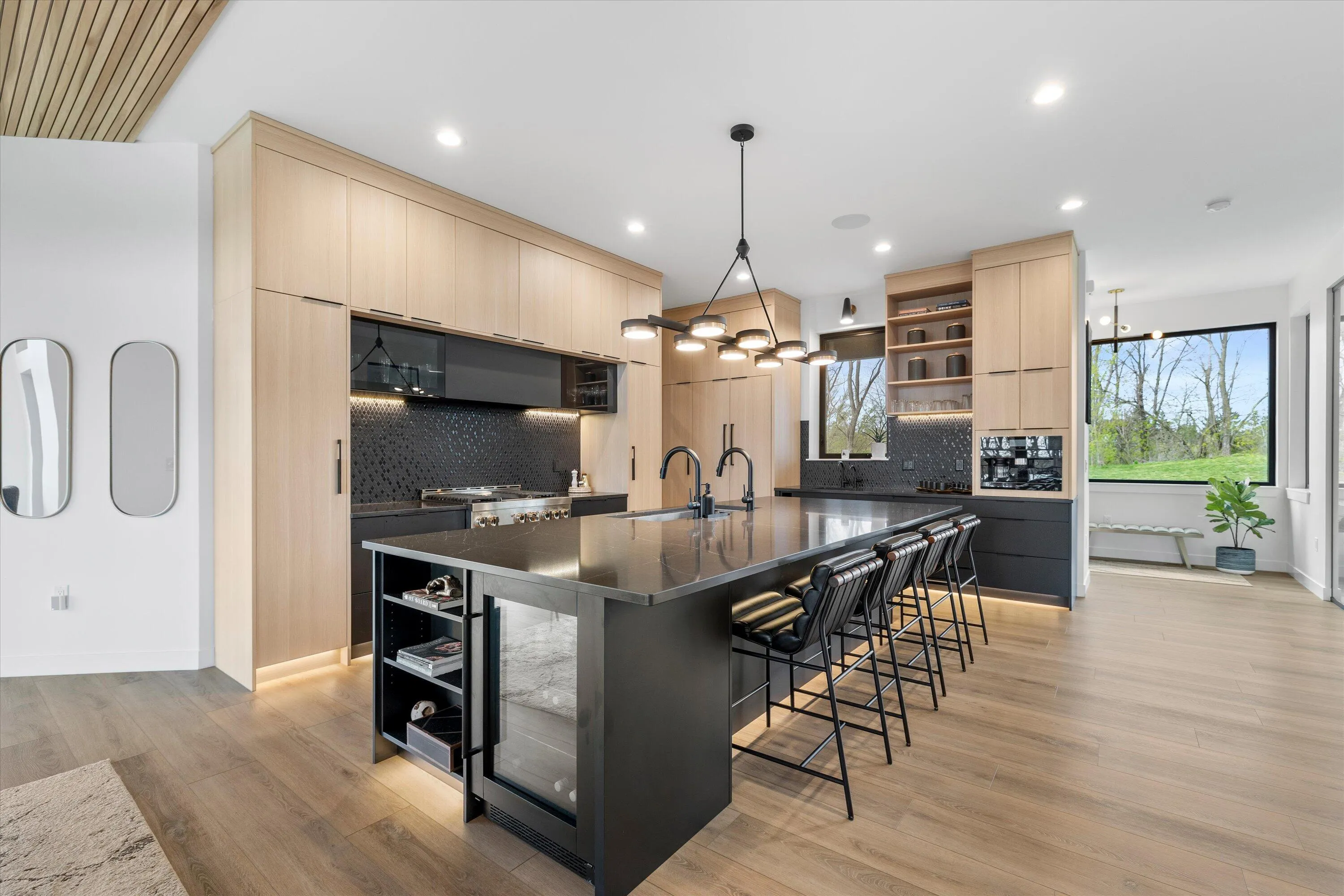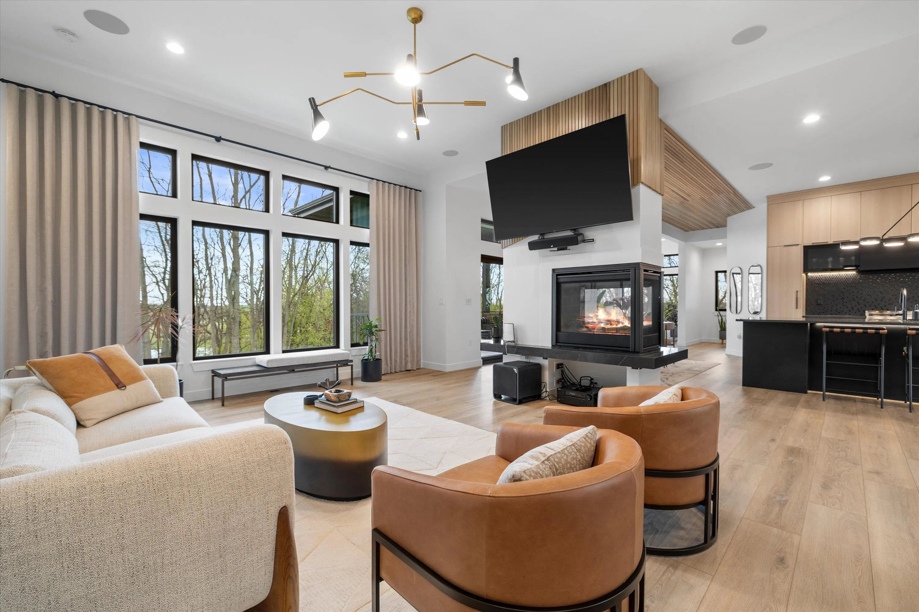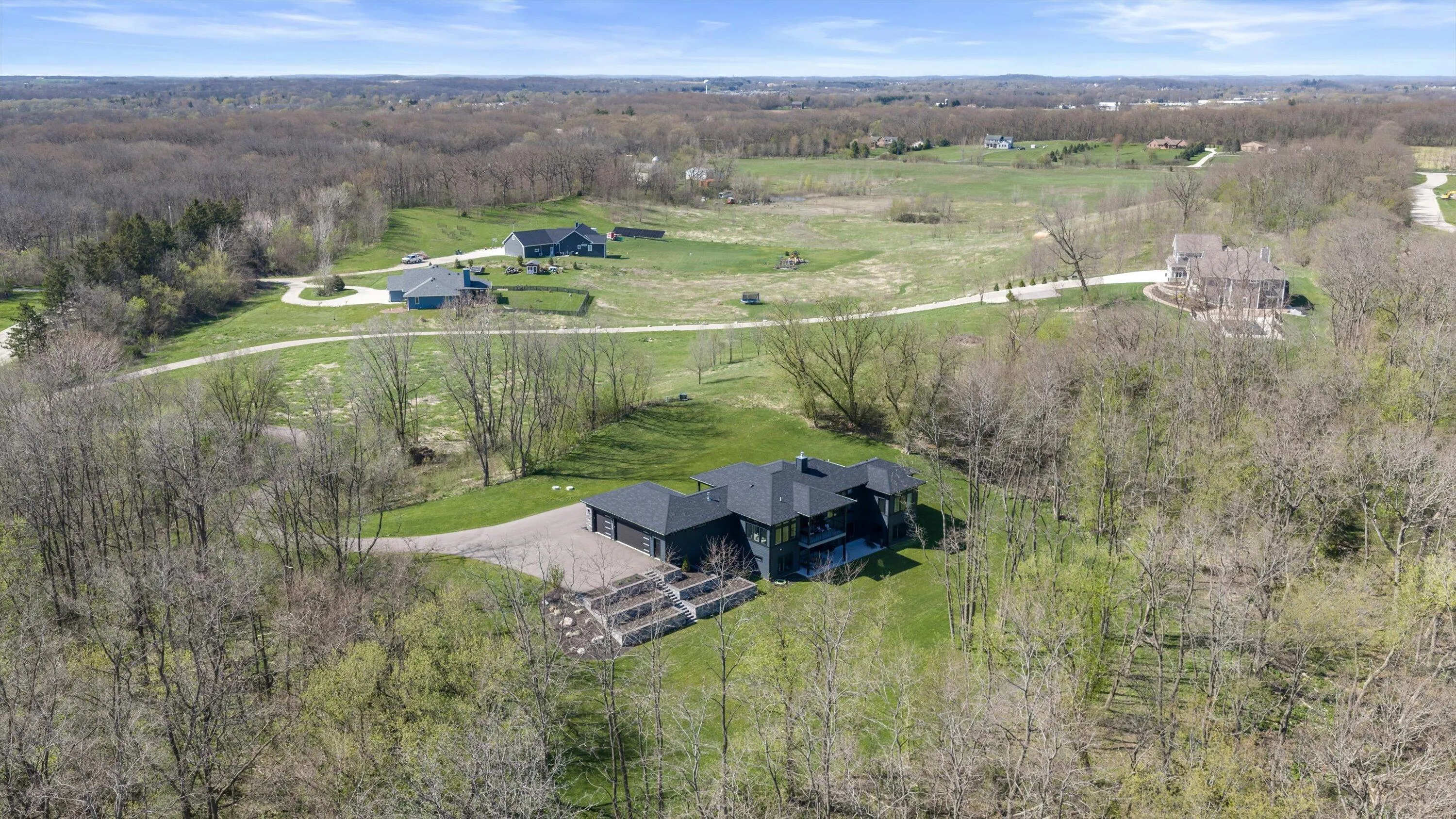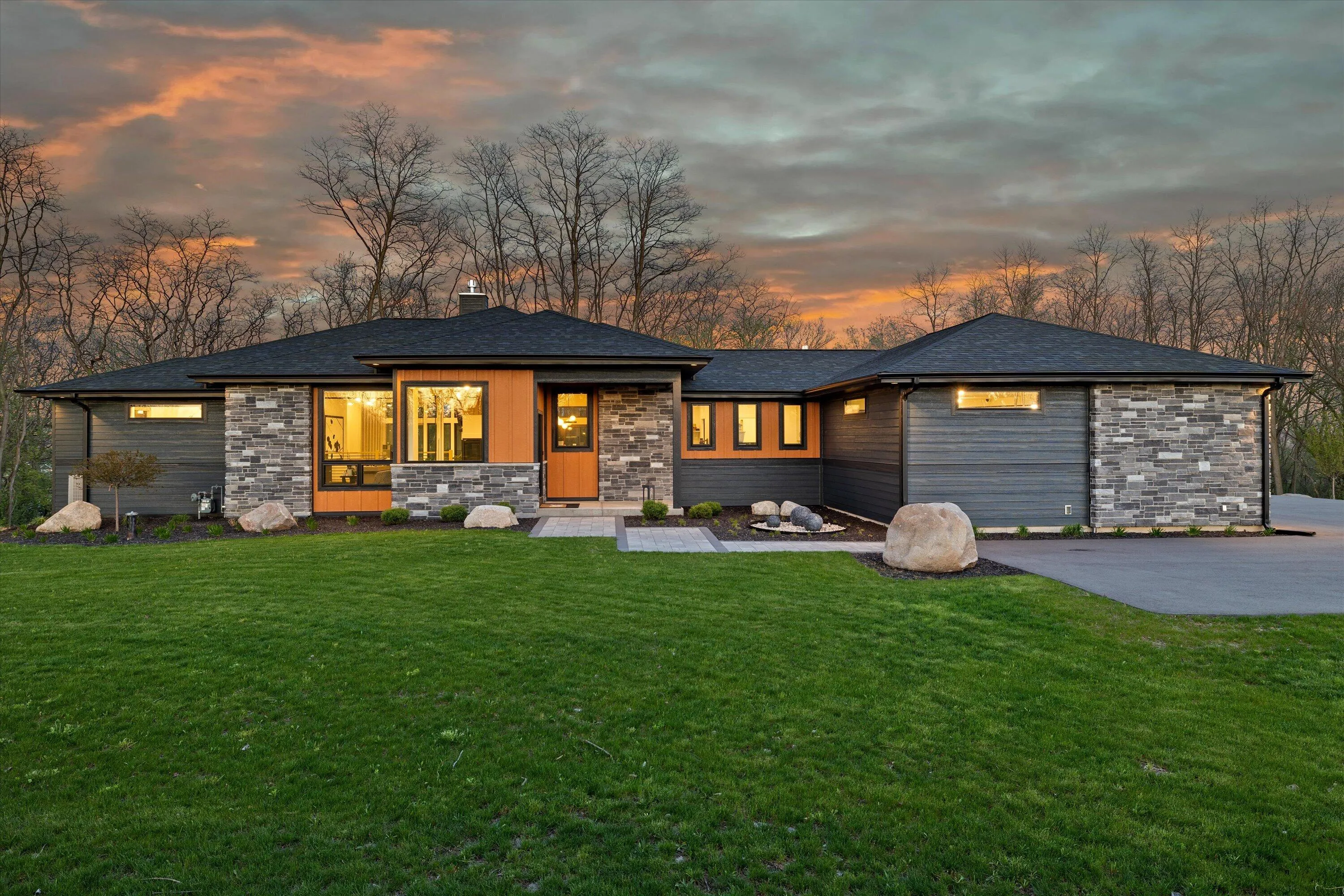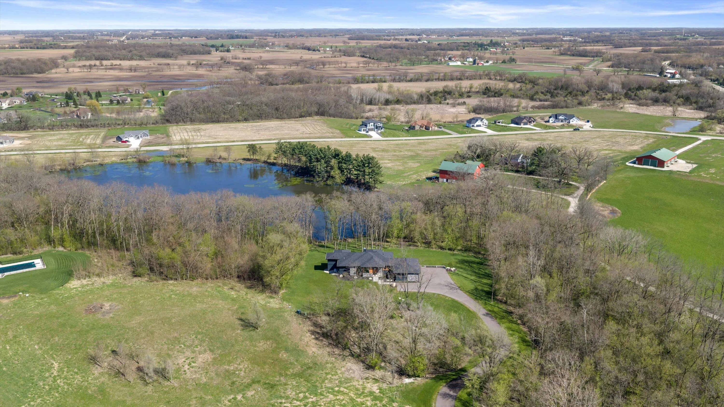 Introducing Milwaukee Magazine’s 2024 Best Of Homes & Design Award Winner and Midwest Design Notable Large Kitchen Design By Interior Designer Natasha Jones! Buyers will love this modern contemporary home with warm tones and wood finishes complete with modern lines. Stunning award winning contemporary kitchen is the centerpiece of this new build and open to the living spaces with soaring ceilings and floor to ceiling windows that flood the space with natural light in tranquil rural setting! Private office is a unique glass enclosure. Loads of storage with walk-in scullery and back hall mudroom. Exposed lower level has two additional bedrooms, full bath, spa and workout area and great entertaining space with views of the pond. Essential 3.5 Car garage. and expansive yard. Such a find!