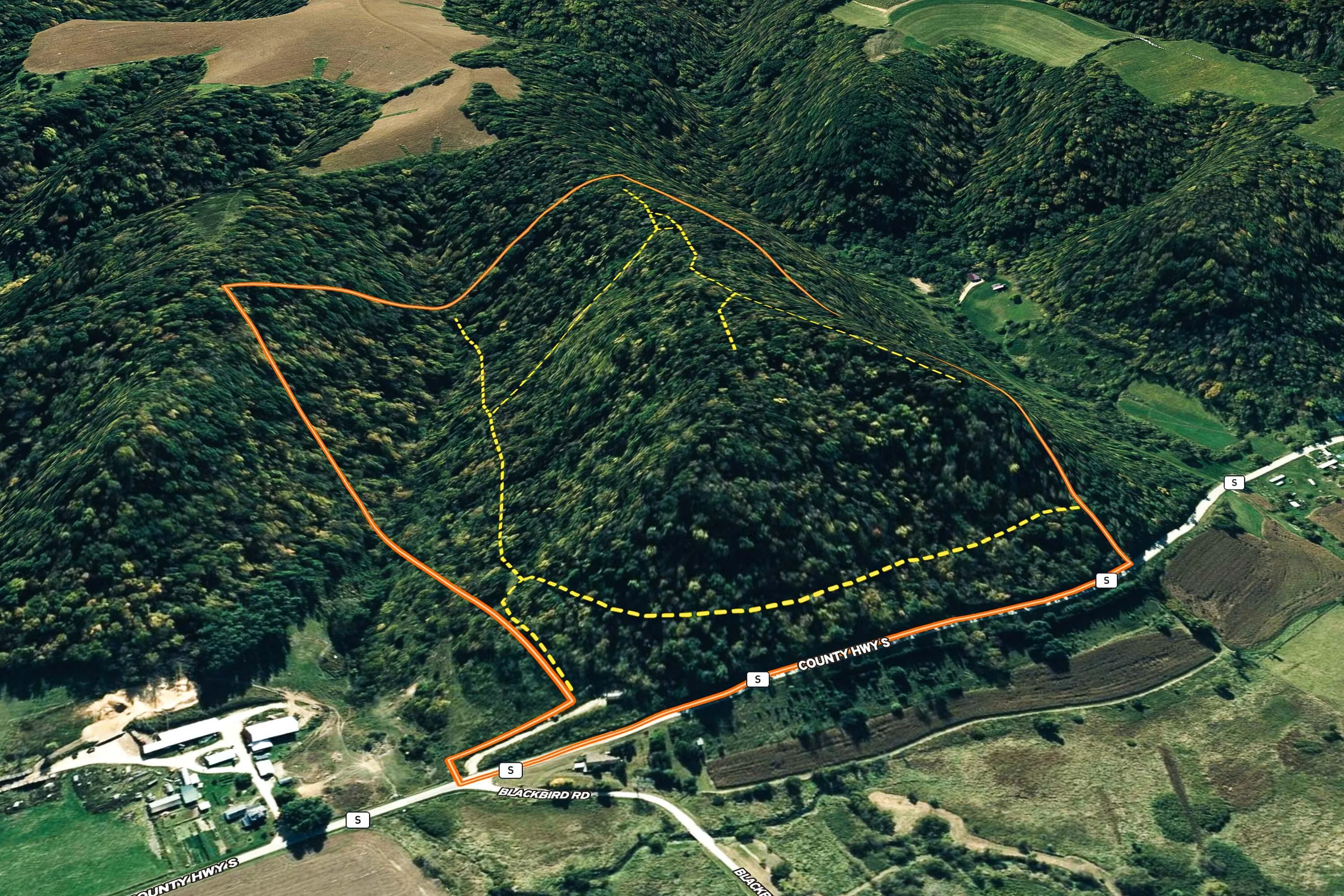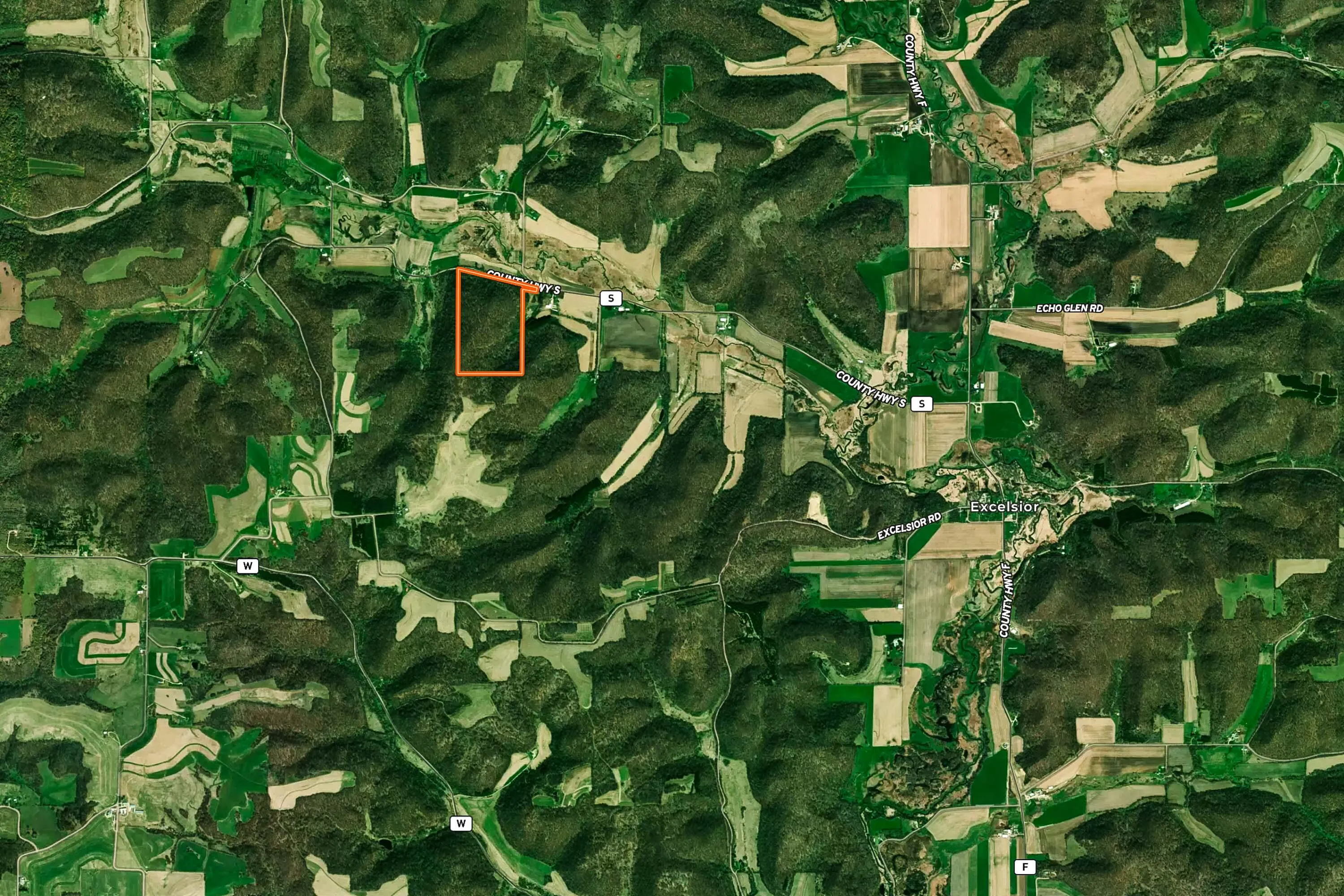 From Richland Center head west on US-14 for 7.1 mi. Turn left/south onto WI-171 for 2.9 mi. Turn left/south onto Co Hwy F for 7.0 mi. Right/west onto Co Rd S for 1.8 mi. Property is on the left/south.