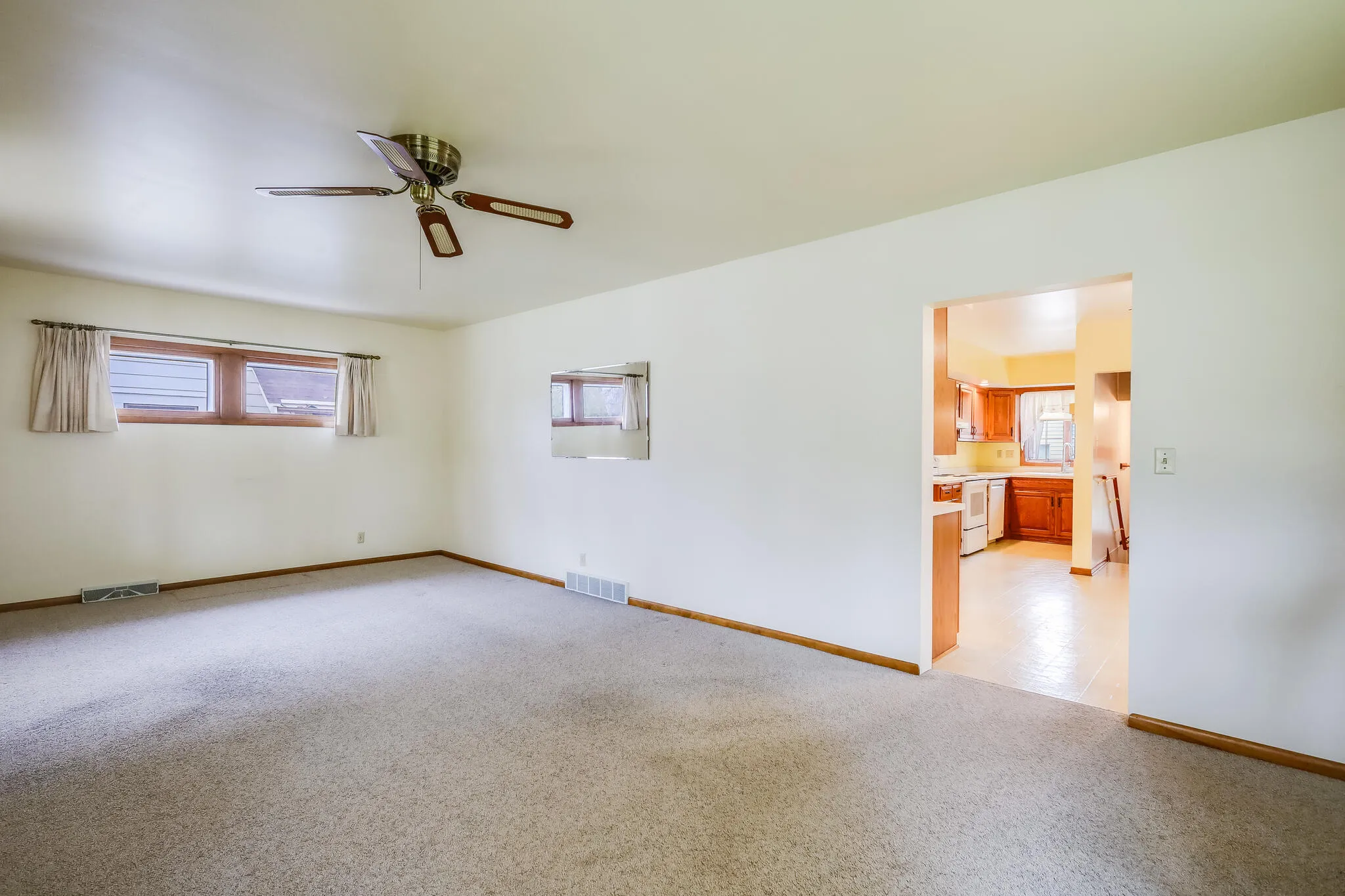Charming 3-4BR 1.5-story in a convenient location near shopping, schools, groceries, downtown & easy interstate access. Same owner 60+ yrs and well cared for throughout. Great curb appeal with enclosed front porch, bright living room with abundant windows, & eat-in kitchen w/ oak cabinets, ample counter/cabinet space & all appliances are included. Main floor BR + full bath with custom tiled walk-in shower. Upper level offers 3 BRs (1 walk-thru-ideal office) + 2nd full bath. Tons of closet/storage. Partially finished lower level has a rec room, laundry, slop sink, shower & toilet. Updated windows, water lateral to street & electrical panel. Detached 2+ car garage w/ extra storage & quaint backyard. Roof -13′, furnace 14′ water heater 22′. This one is a must-see!