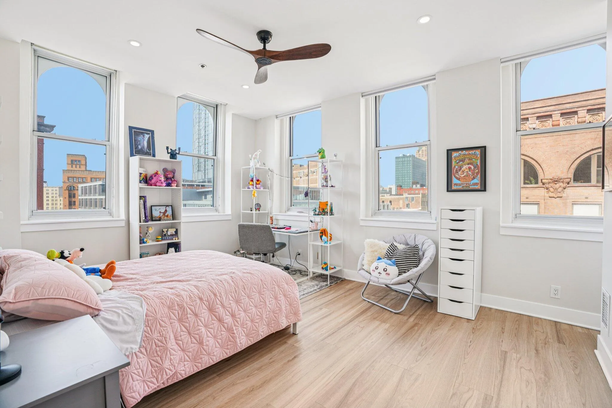 Welcome home to this immaculately updated 2-bedroom, 2-bathroom corner unit at The Broadway, where modern style meets Historic Third Ward beauty. Renovations include a new kitchen with quartz countertops and Bosch appliances, LVP flooring and motorized window treatments in both bedrooms, a built-in beverage refrigerator in the spacious den, upgraded bathrooms with your choice of a soaking tub or walk-in shower, and more (see attached features document). *DEEDED, UNDERGROUND PARKING* and a spacious storage unit on the 5th floor are included, and access to 6th floor gym, sauna and community room – and first floor green space. Just mere blocks from downtown and Third Ward restaurants, shopping, entertainment, festivals, and Lake Michigan!
