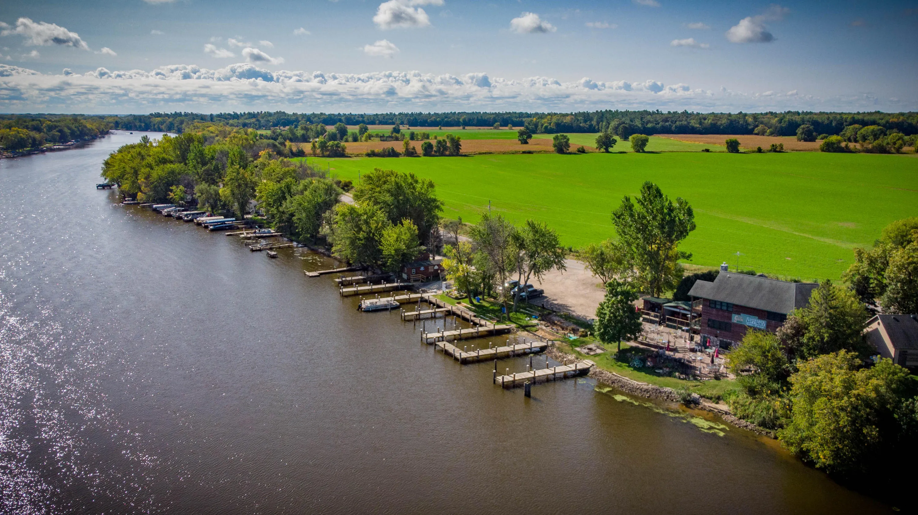 Fantastic opportunity to own the renowned Gala Resort and Campground on the banks of the Wolf River! Amazing view of the river from the two tier outdoor patio, which also has a tiki bar and stage area. Spectacular bar/restaurant with full kitchen, and 3BR, 2BA home above it. Additional 1BR/1BA home next door. Campground includes 61 leased lot rentals, plus campsites.